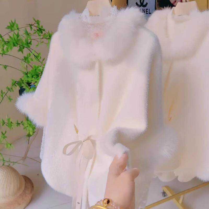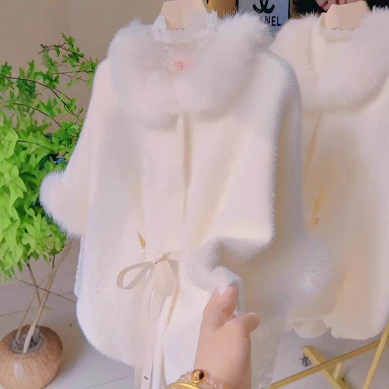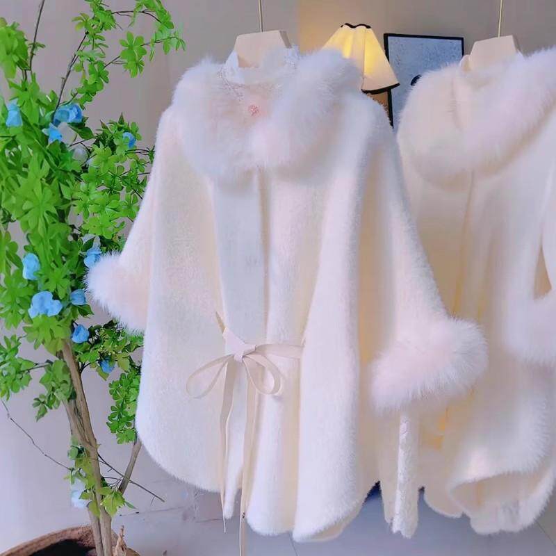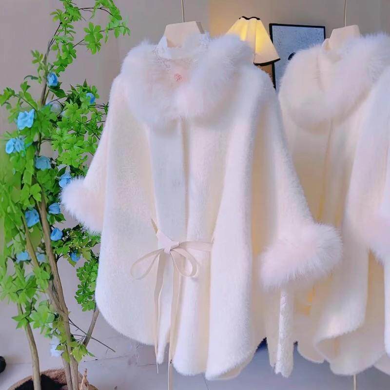 斗篷毛领大衣女秋冬高级感气质百搭中长款加厚外套名媛风绑带披肩