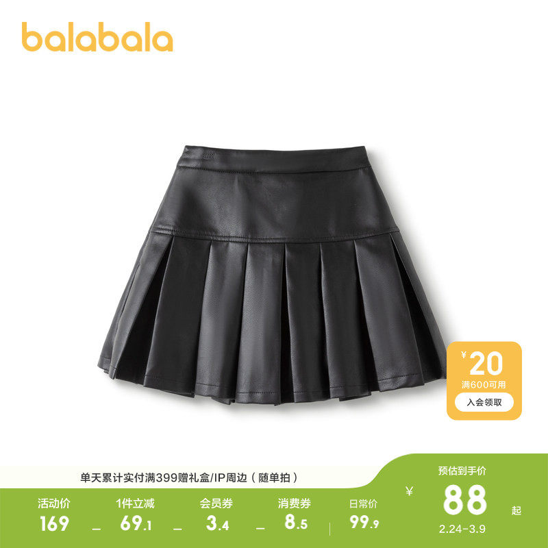 巴拉巴拉童装儿童半身裙秋冬装女童短裙子PU仿皮百褶裙甜酷时尚潮