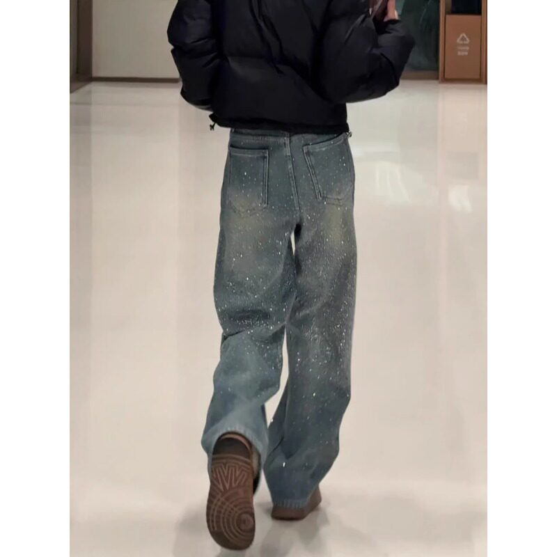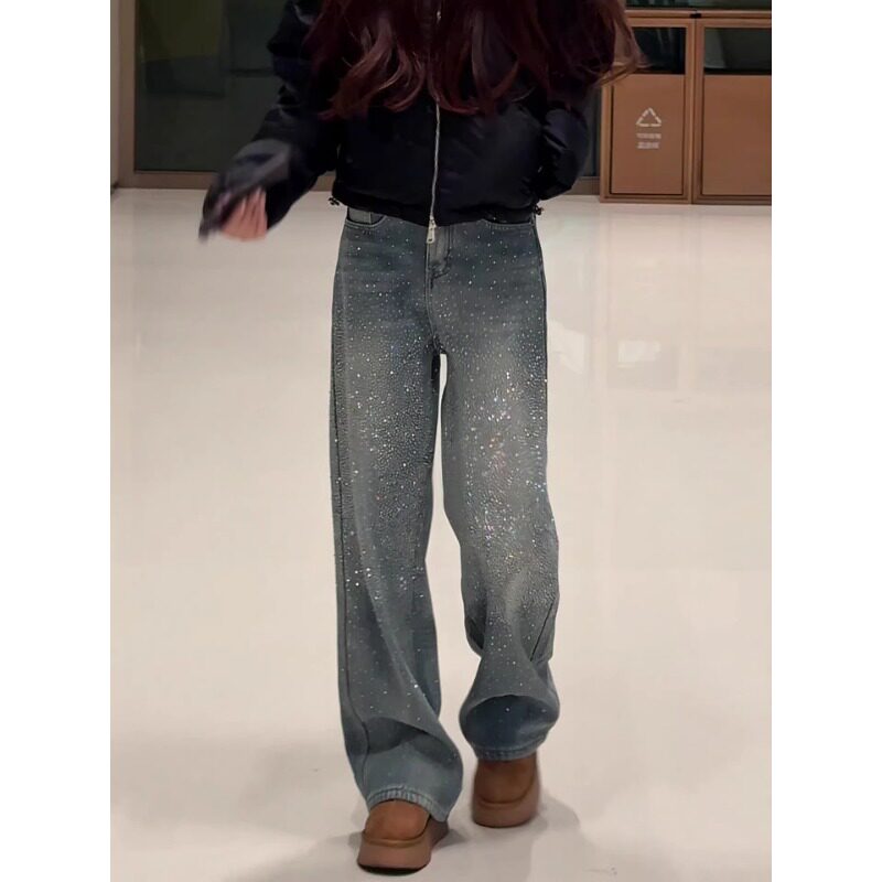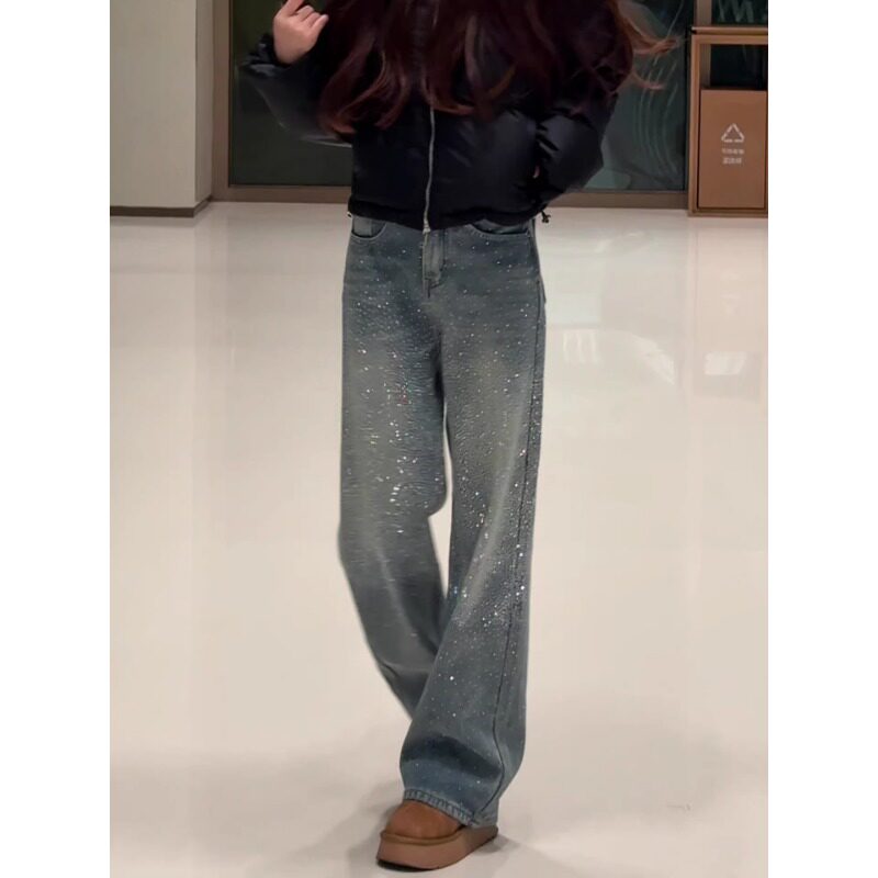 满天星烫钻阔腿牛仔裤女春季2026新款今年流行爆款高腰显瘦直筒裤