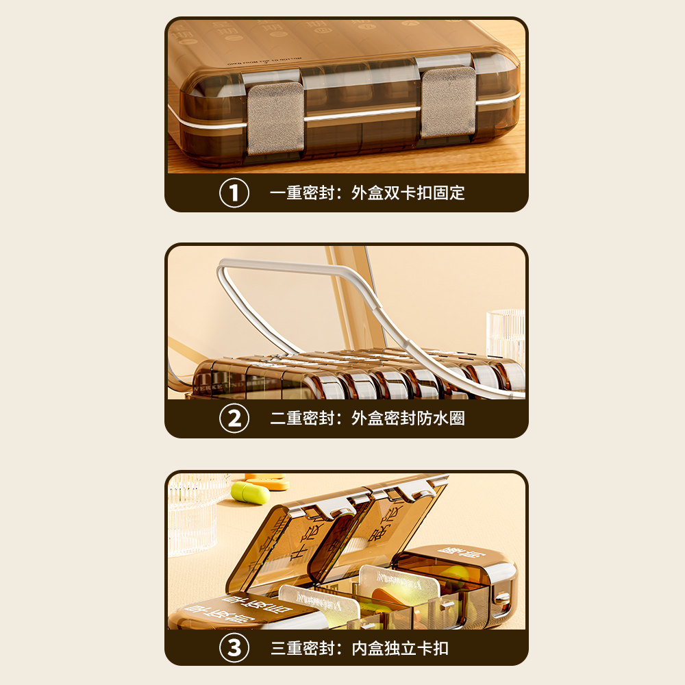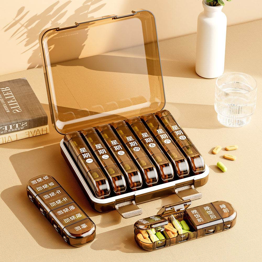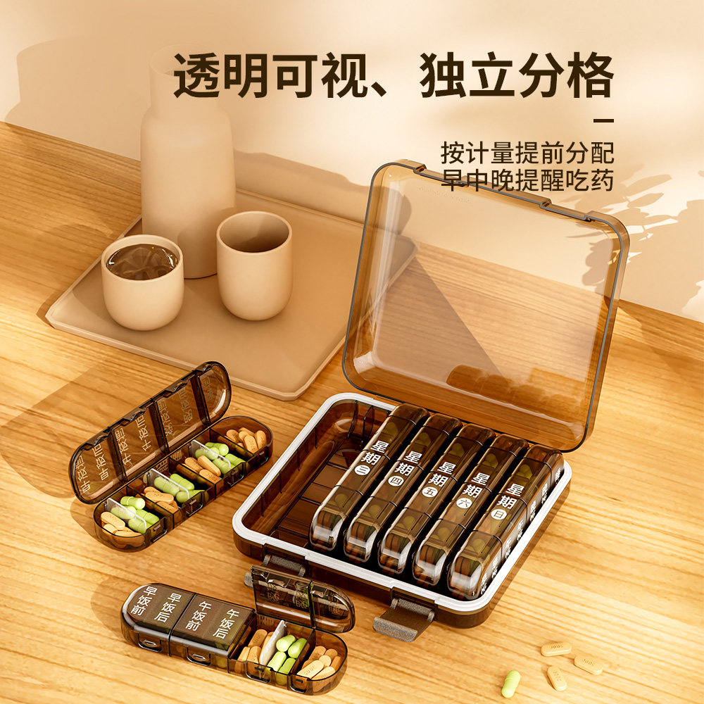 老人药盒一个月30天分药盒便携早中晚一周大容量药品吃药提醒盒子