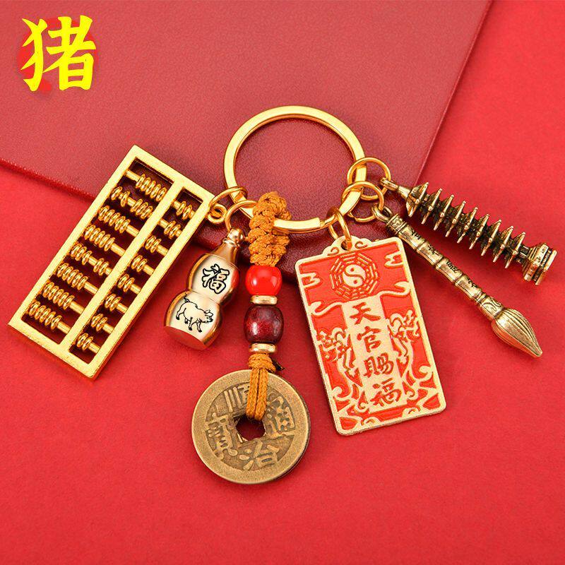 黄铜天官赐福文昌状元笔塔钥匙扣金榜题名笔男女生初中高挂件书包