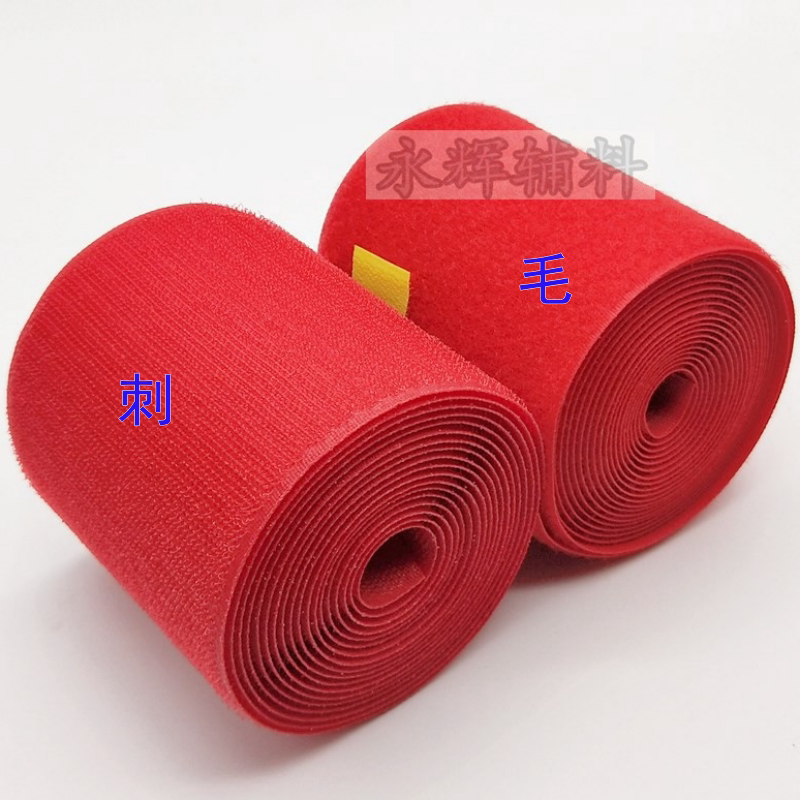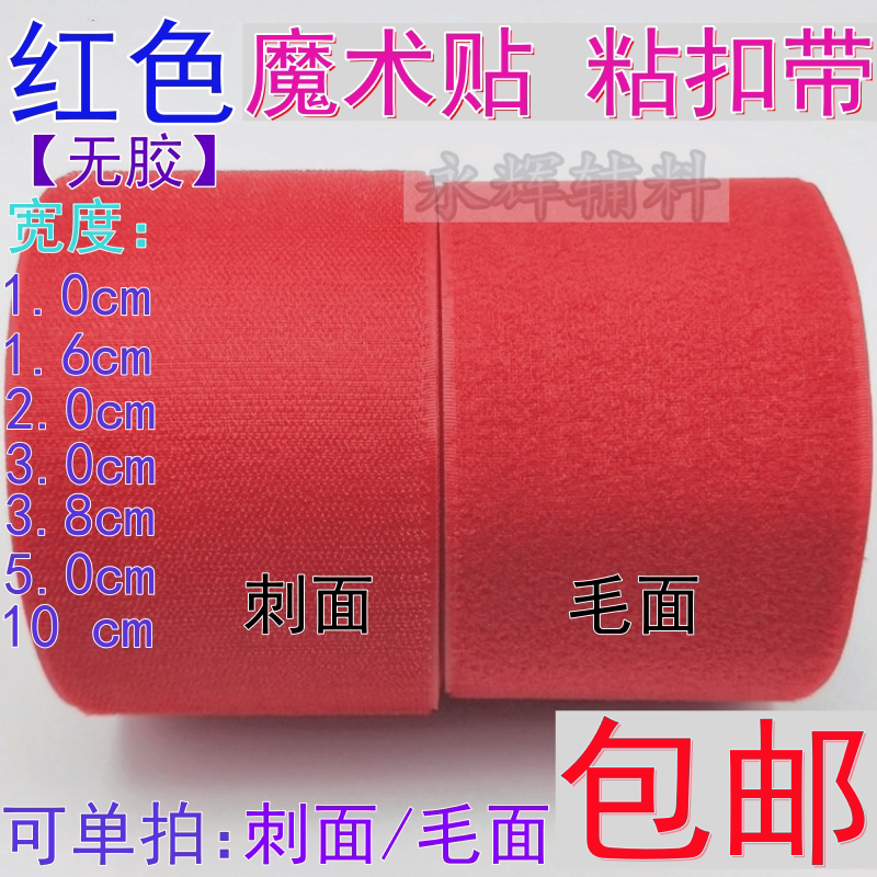 红色无胶魔术贴粘扣带衣服鞋子毛刺子母贴尼龙搭扣无背胶粘扣带