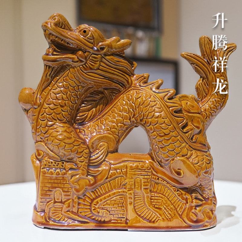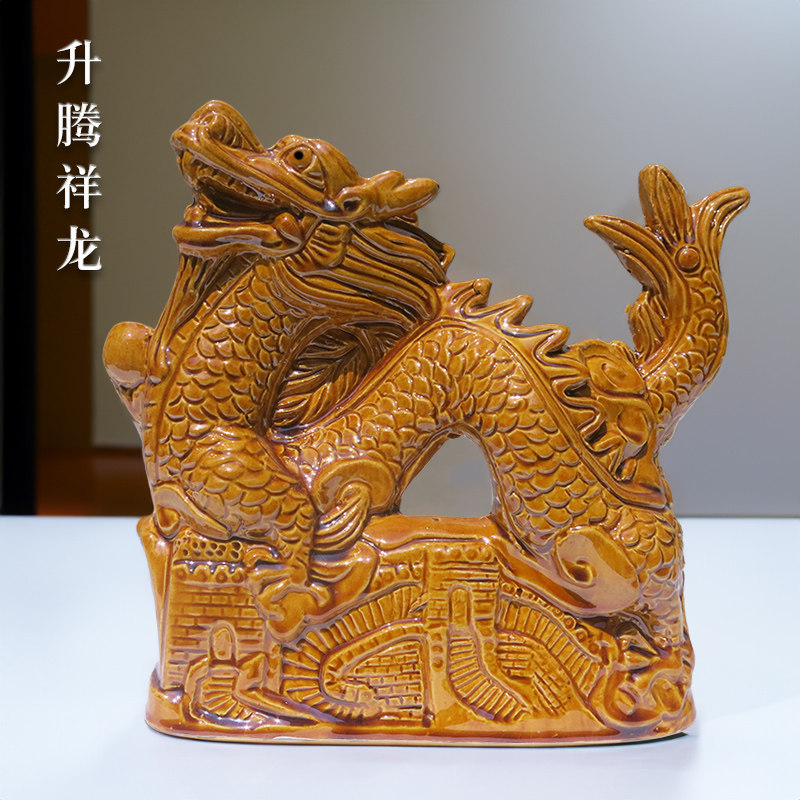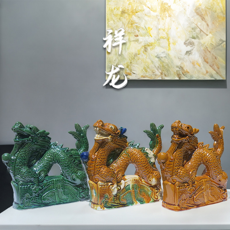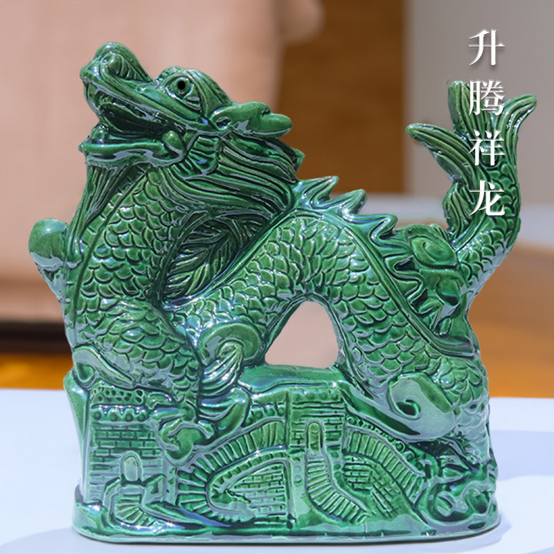 唐三彩龙陶瓷摆件青龙补角白虎绿色龙青色的龙玄关客厅户外屋顶龙