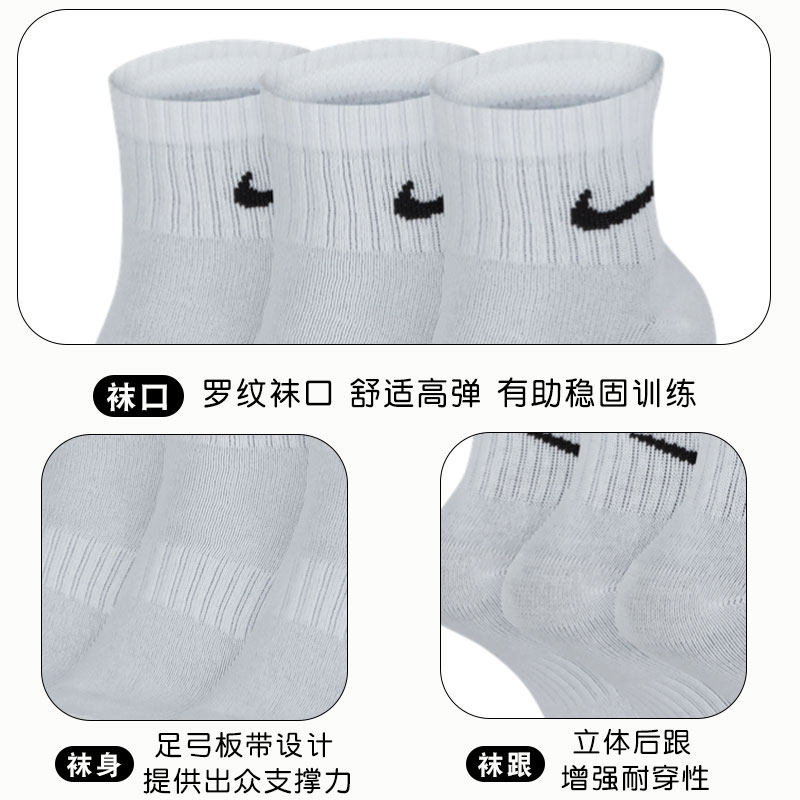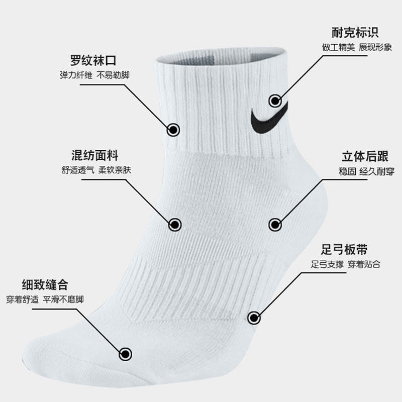 Nike耐克正品运动袜男袜女袜黑色短袜中筒袜透气夏季男薄款袜子潮