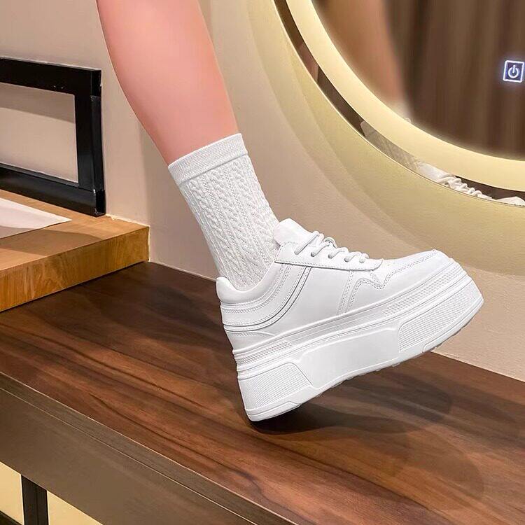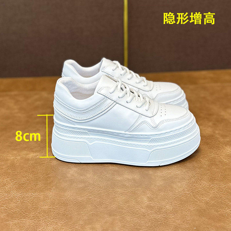 真皮百搭内增高8cm10公分小白鞋2026新款春款小个子松糕厚底女鞋