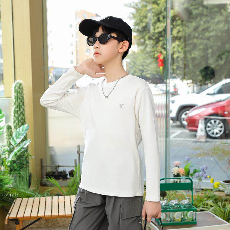 青少年t恤男长袖春秋2025新款男童打底白色男孩初中学生纯棉上衣