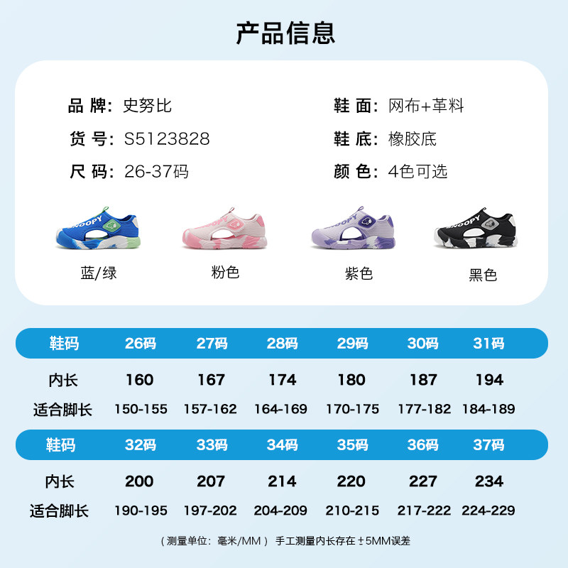 史努比童鞋男童框子鞋儿童网面透气运动鞋夏季2026新款女童包头鞋