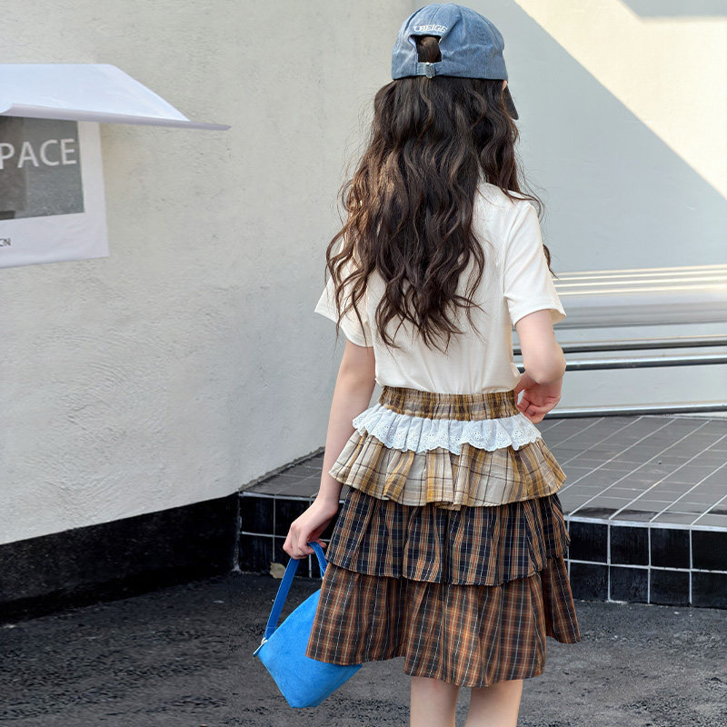女童T恤2026夏季新款中大童时尚百搭短袖蛋糕裙公主洋气爆款套装