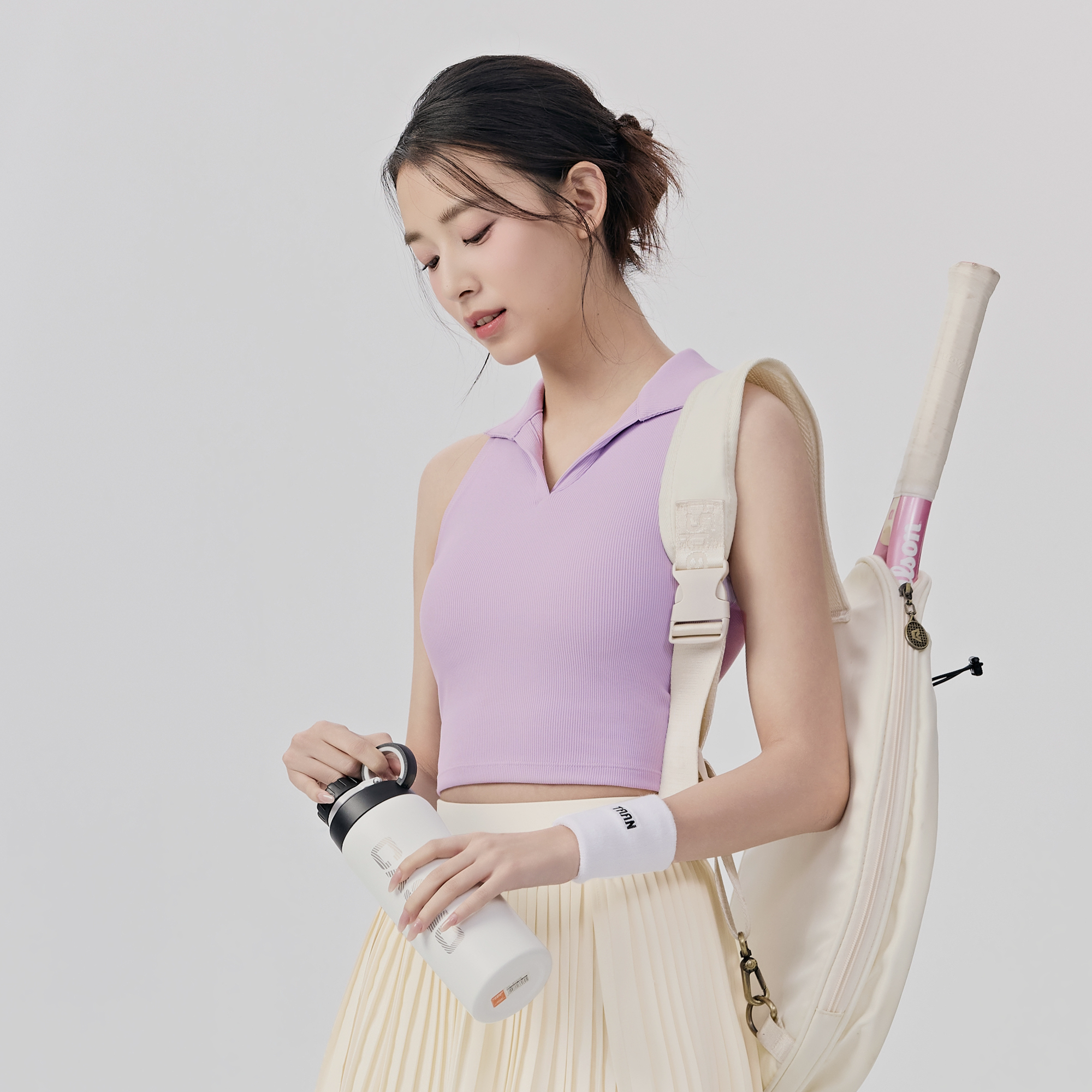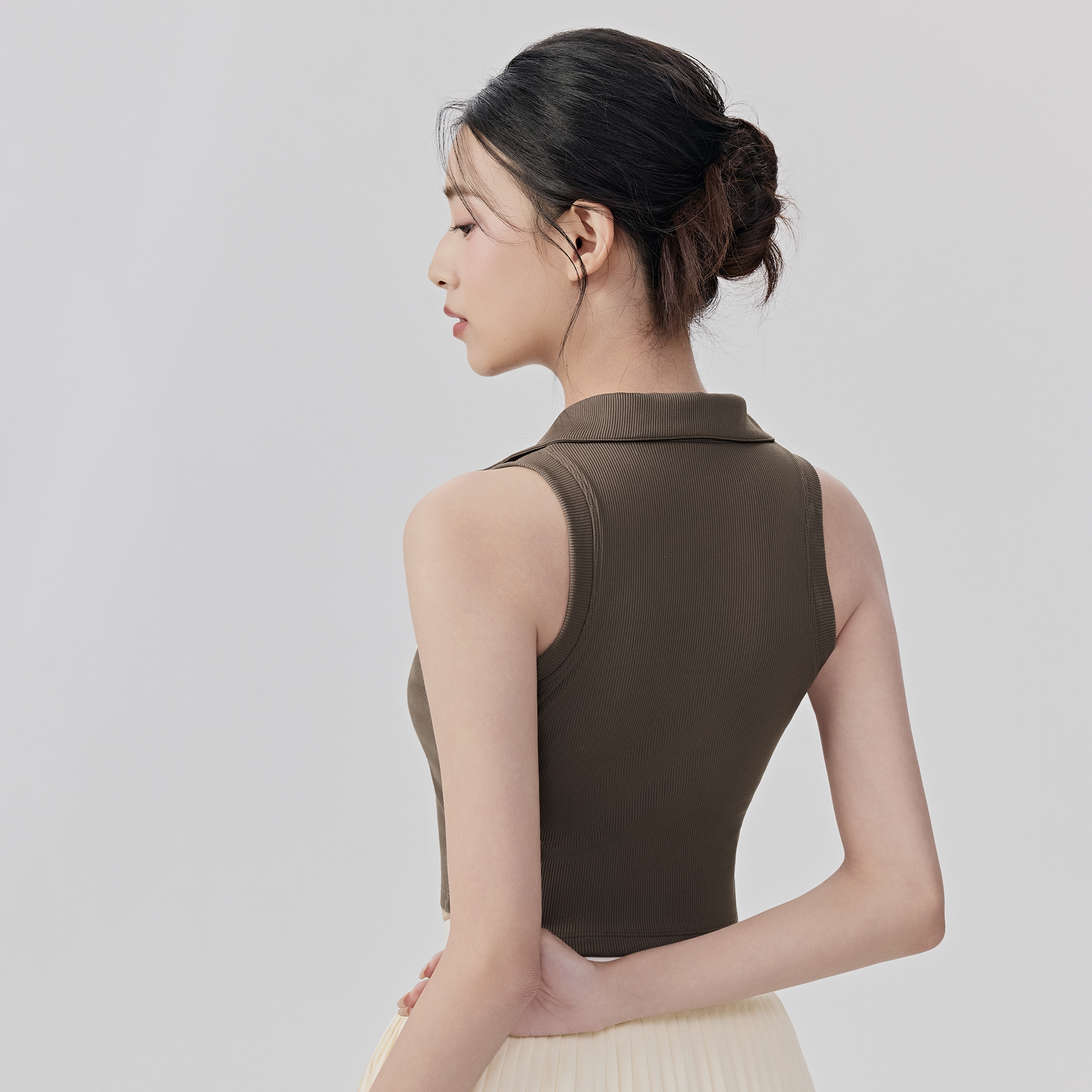 UMAY运动背心女新款含胸垫无袖翻领网球健身服透气POLO领瑜伽上衣