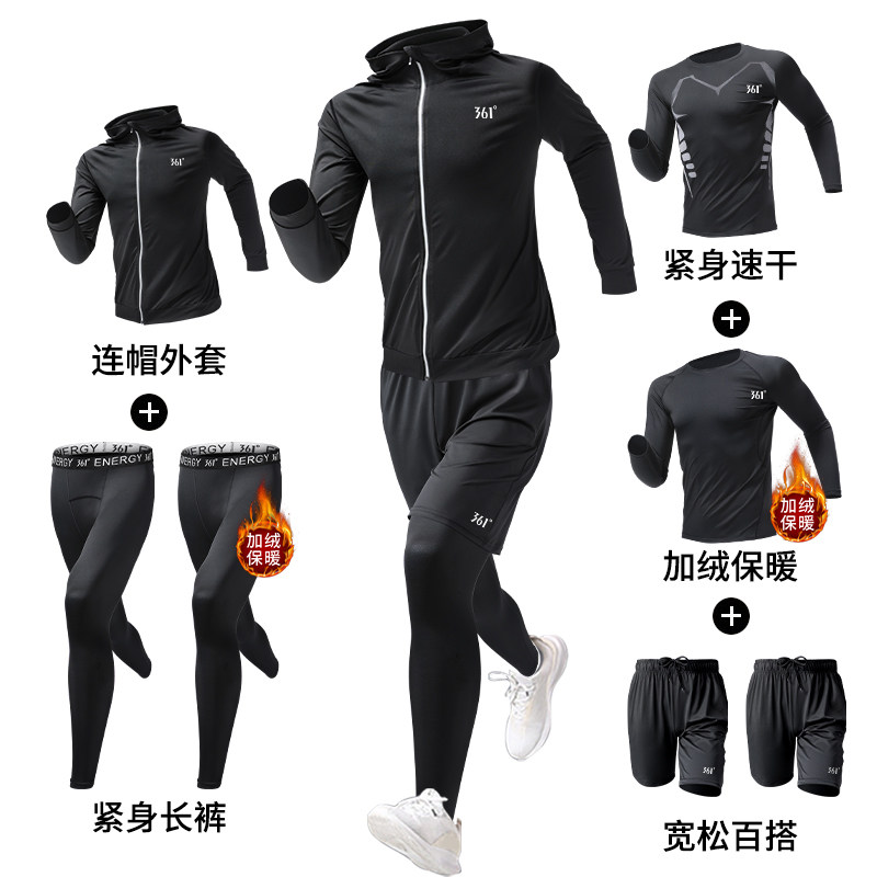 361冬季跑步运动套装男加绒保暖速干衣晨跑体育健身训练服紧身衣