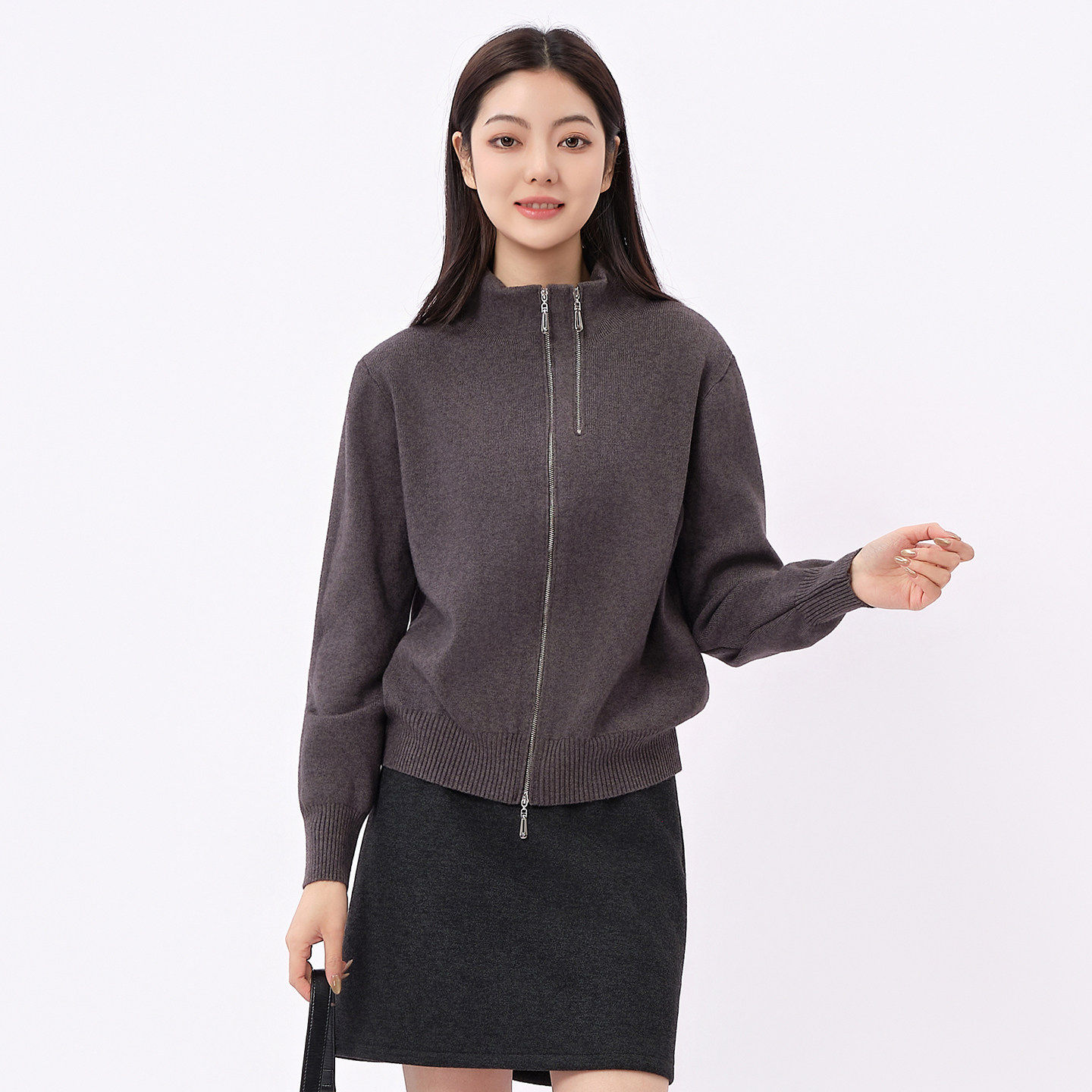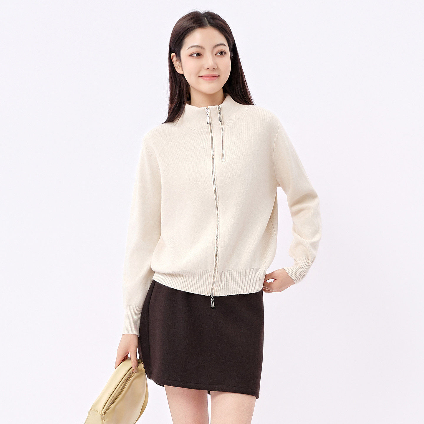 芭依璐2026早春新款时尚长袖毛衣舒适休闲百搭针织衫半高领开衫女