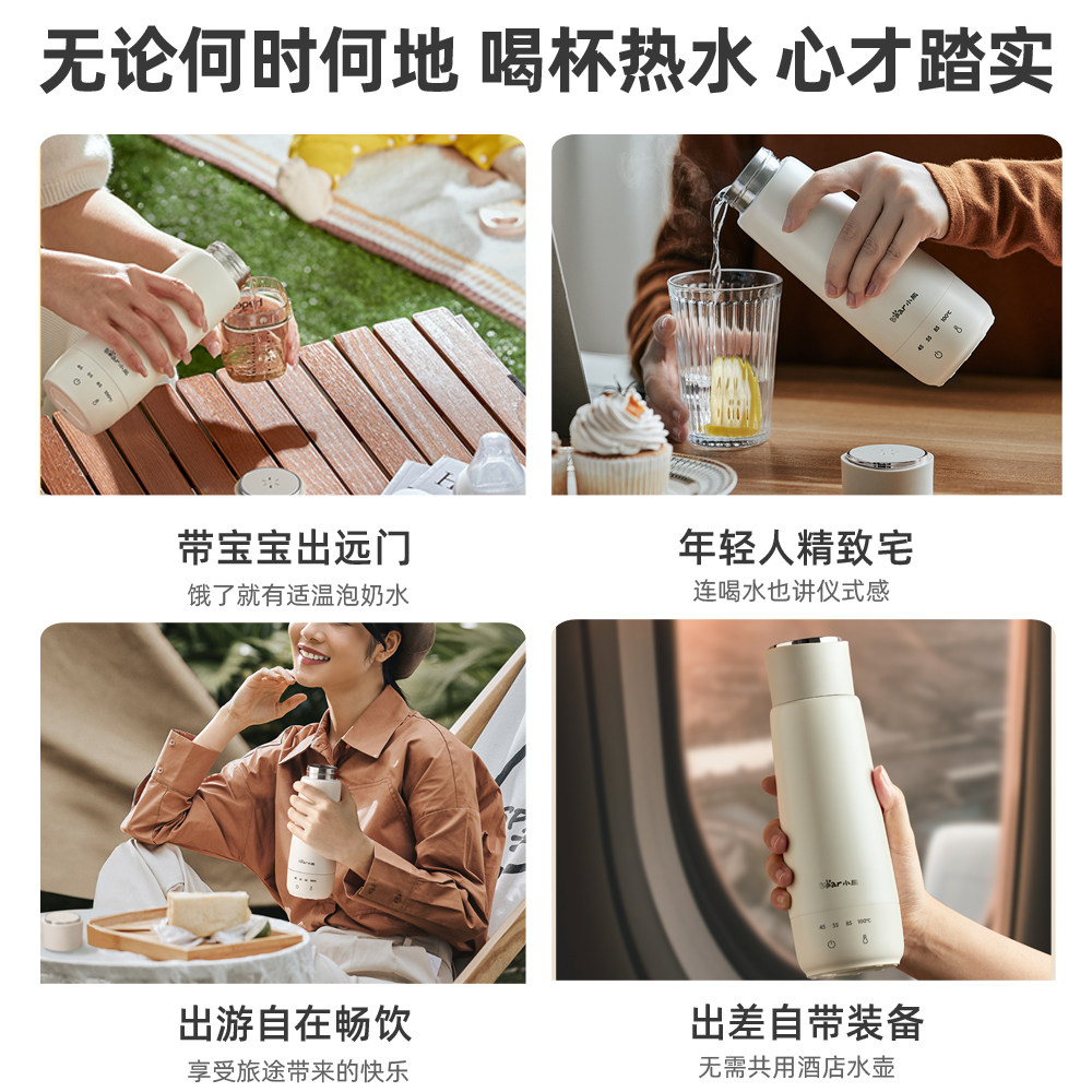 小熊便携式烧水壶家用小型多国保温一体旅行办公室电热电加热水杯