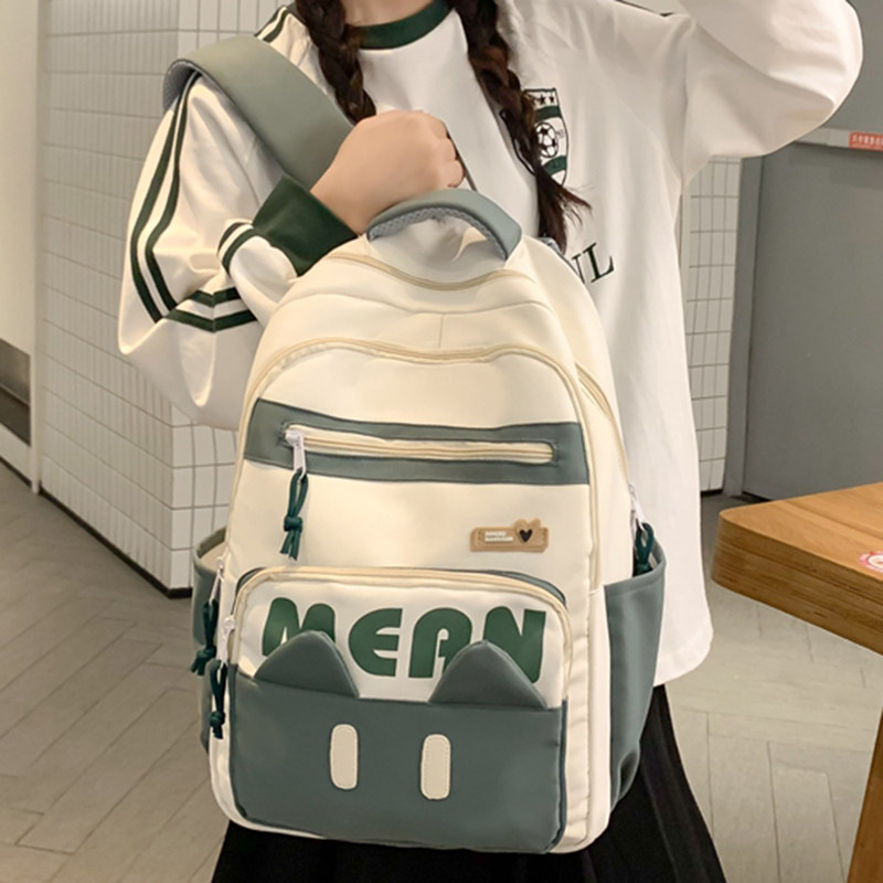 绿色猫咪书包初中女生高颜值小众双肩包高中生大容量结实耐用背包