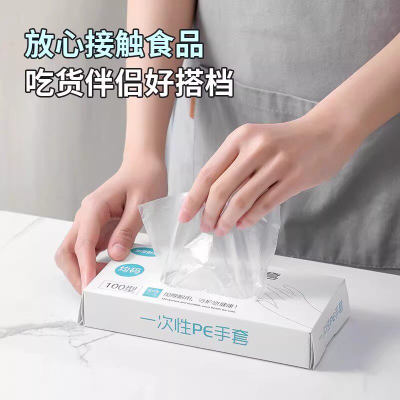 2000只一次性pe手套加厚食品级餐饮塑料薄膜透明耐用PE款手套防油