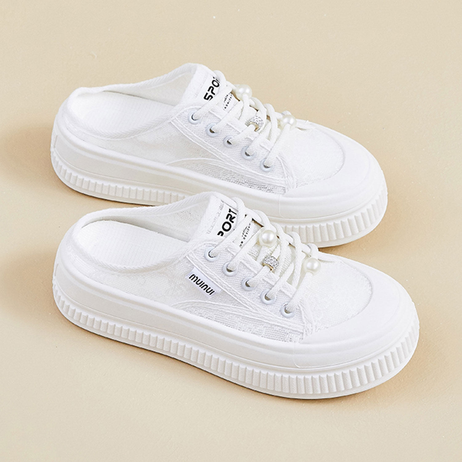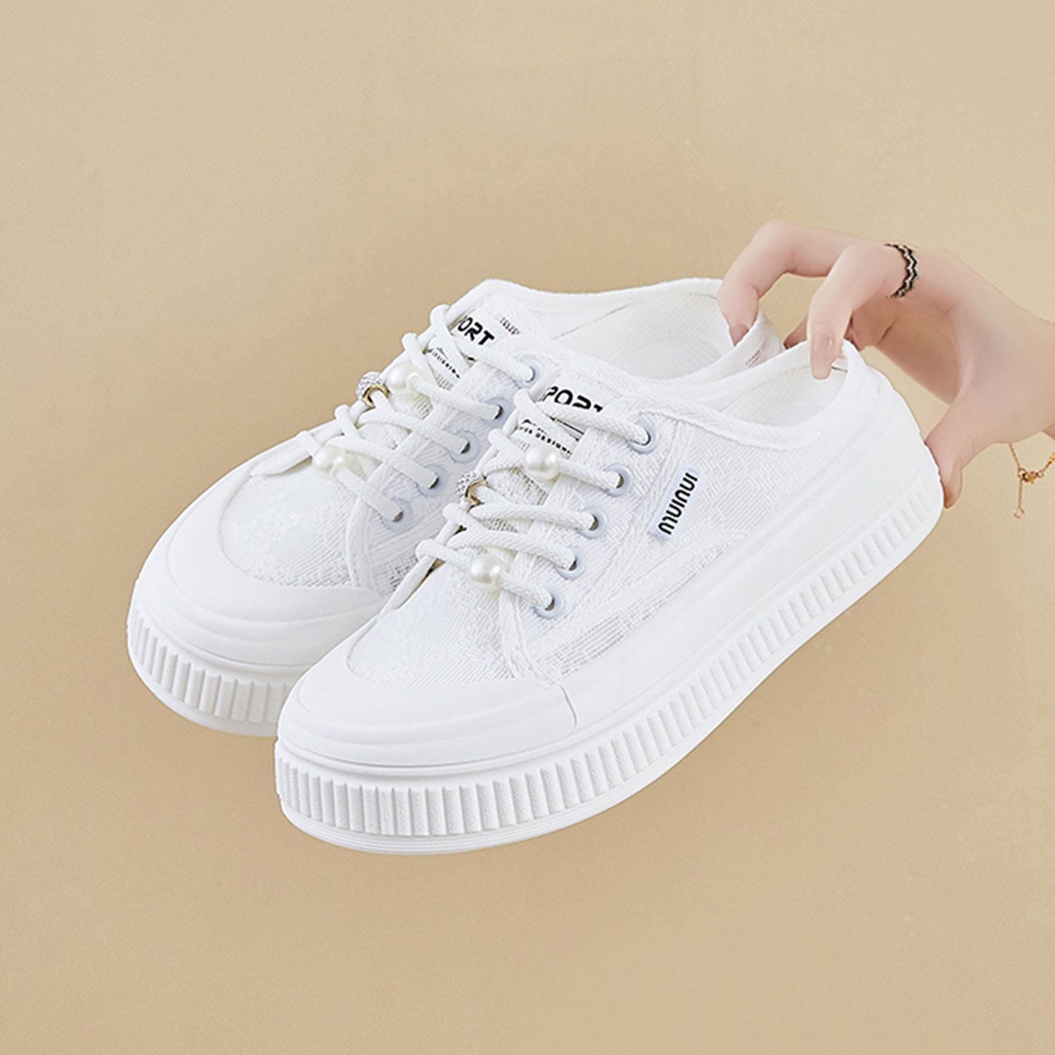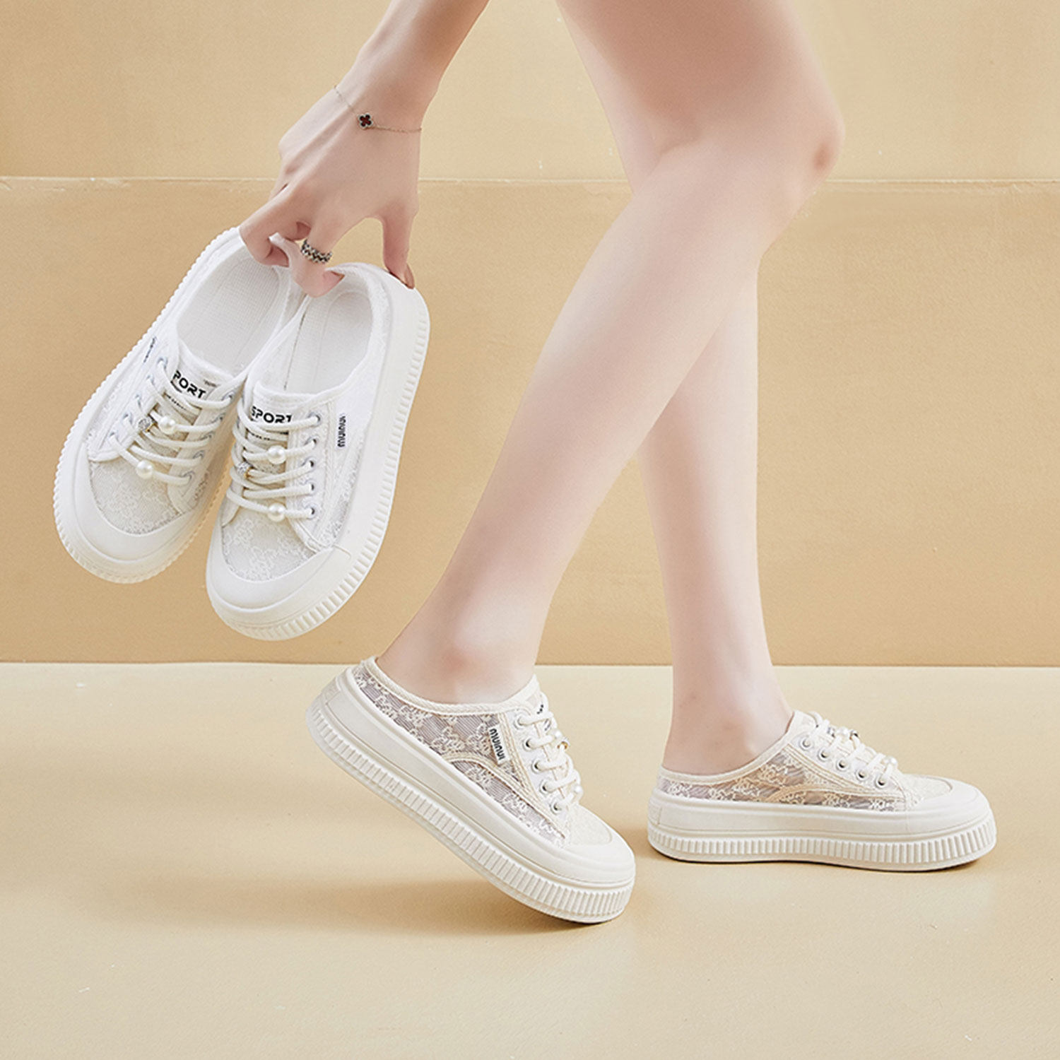 夏天薄款透气舒适网鞋透气不闷脚女鞋单网半托鞋厚底小白浙江潮鞋