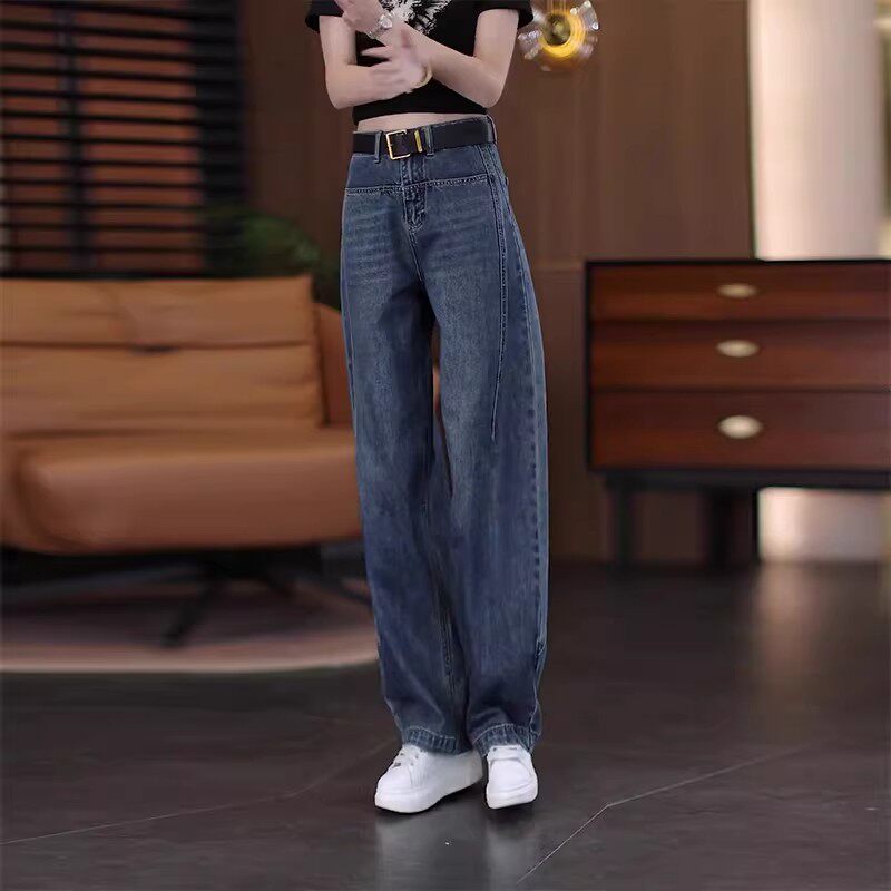 弯刀牛仔裤女秋冬2025新款今年流行爆款小个子加绒加厚直筒阔腿裤