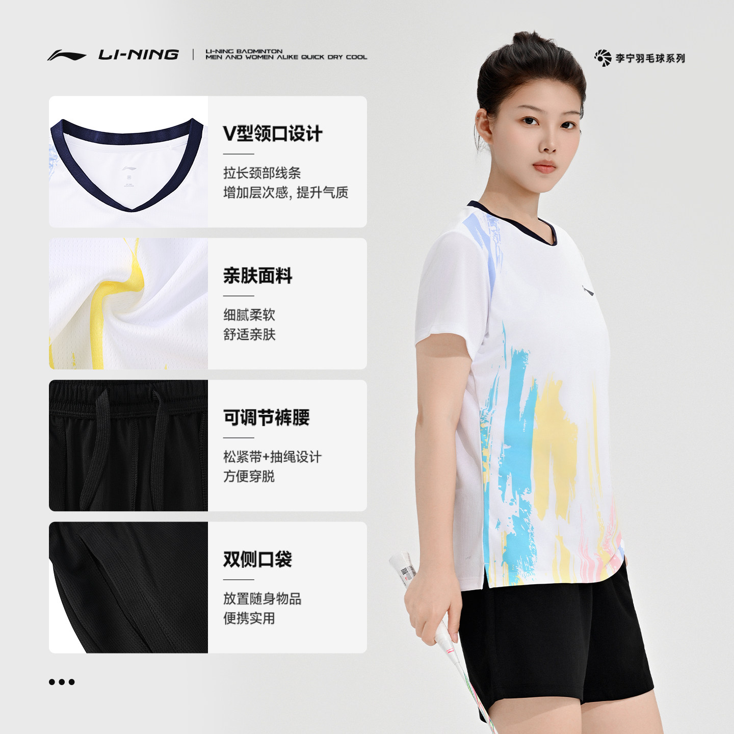李宁正品2025新款羽毛球服女款速干吸汗柔软舒适专业比赛套装