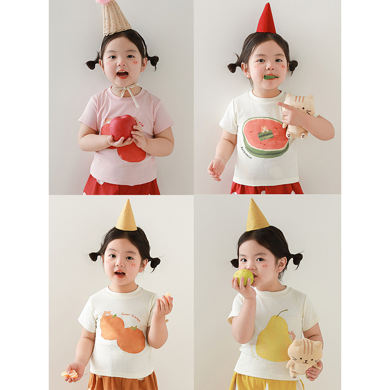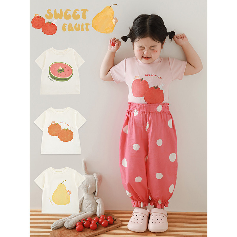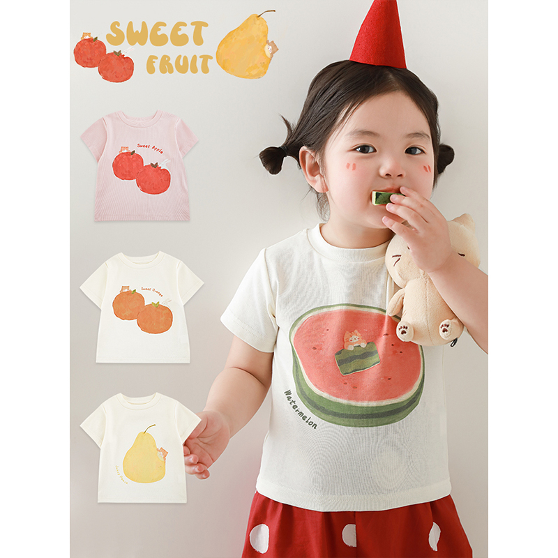幼悠 女童多味缤果数码印花短袖T恤2025春夏季修身短款弹力上衣潮