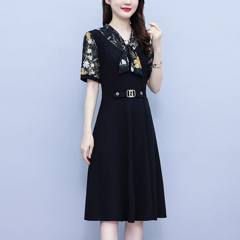 胖mm大码遮肉肚雪纺连衣裙洋气质2024夏天小个子中长款显瘦a字裙