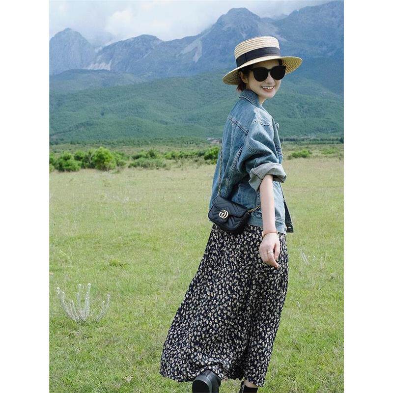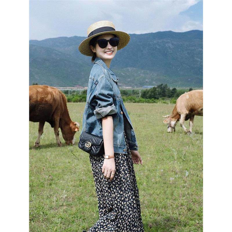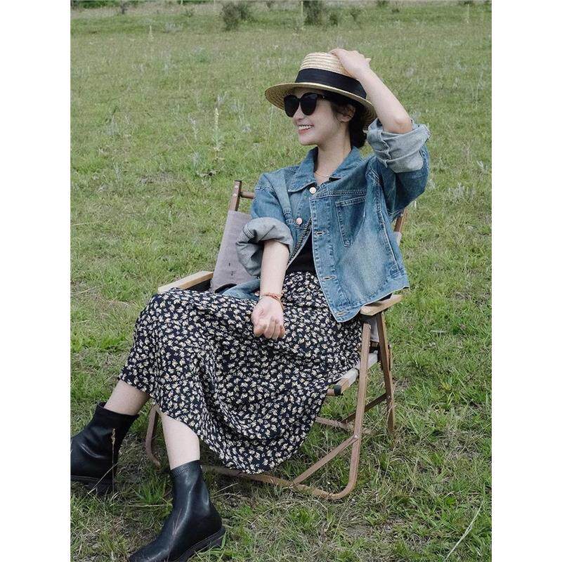 复古牛仔外套搭配连衣裙女春秋新款高街美式蓝色长袖短款牛仔上衣