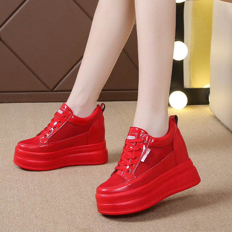 内增高小白鞋女8cm2021夏季新款配裙子厚底网面白鞋松糕透气网鞋