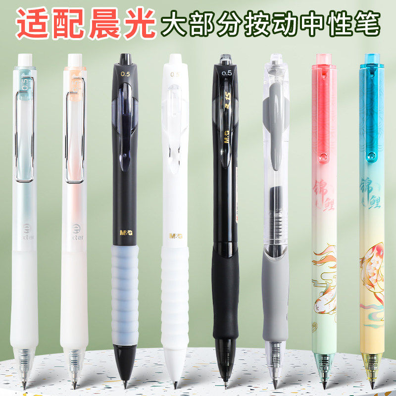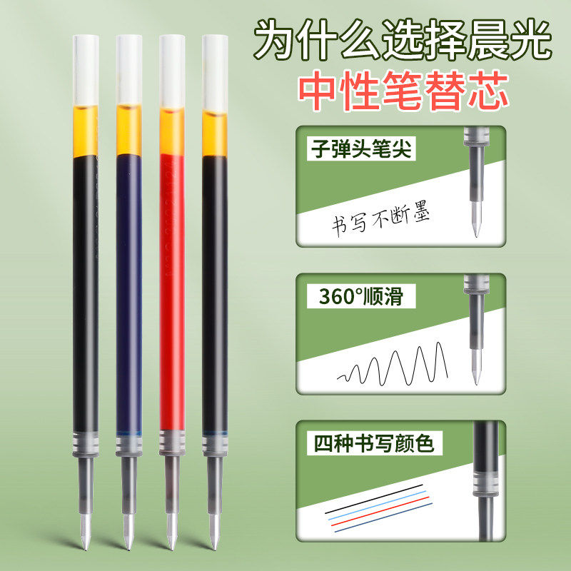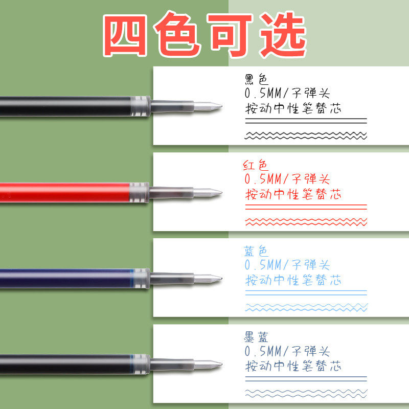 晨光尖叫按动中性笔芯子弹头大容量速干中性笔黑色刷题笔专用蓝红色0.5替芯学生考试按动笔替换笔芯顺滑