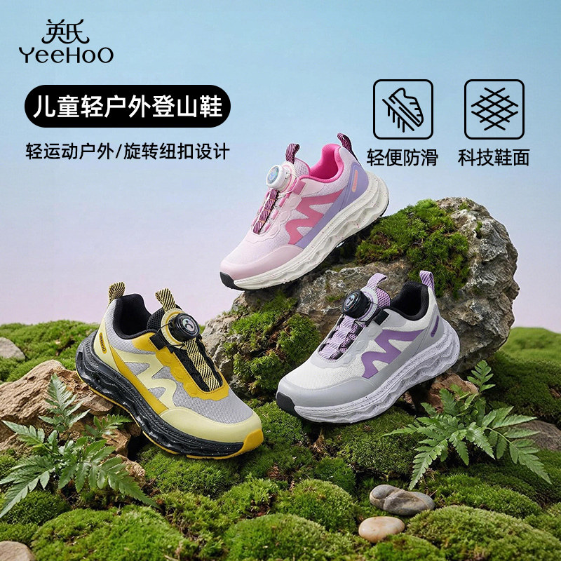 英氏童鞋2026春季新款儿童轻户外运动鞋男童防滑夏季网面登山鞋