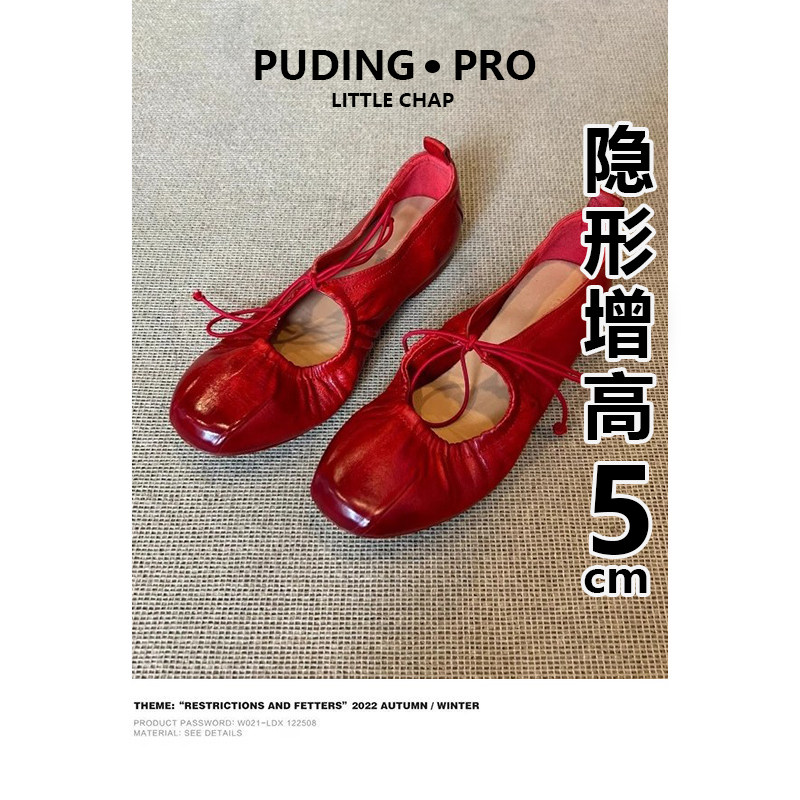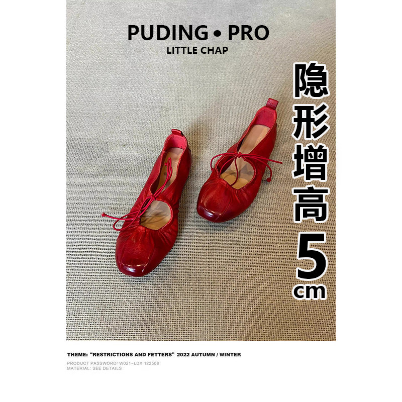 牛皮版~复古风绑带内增高玛丽珍鞋女2026新款小个子红色浅口单鞋