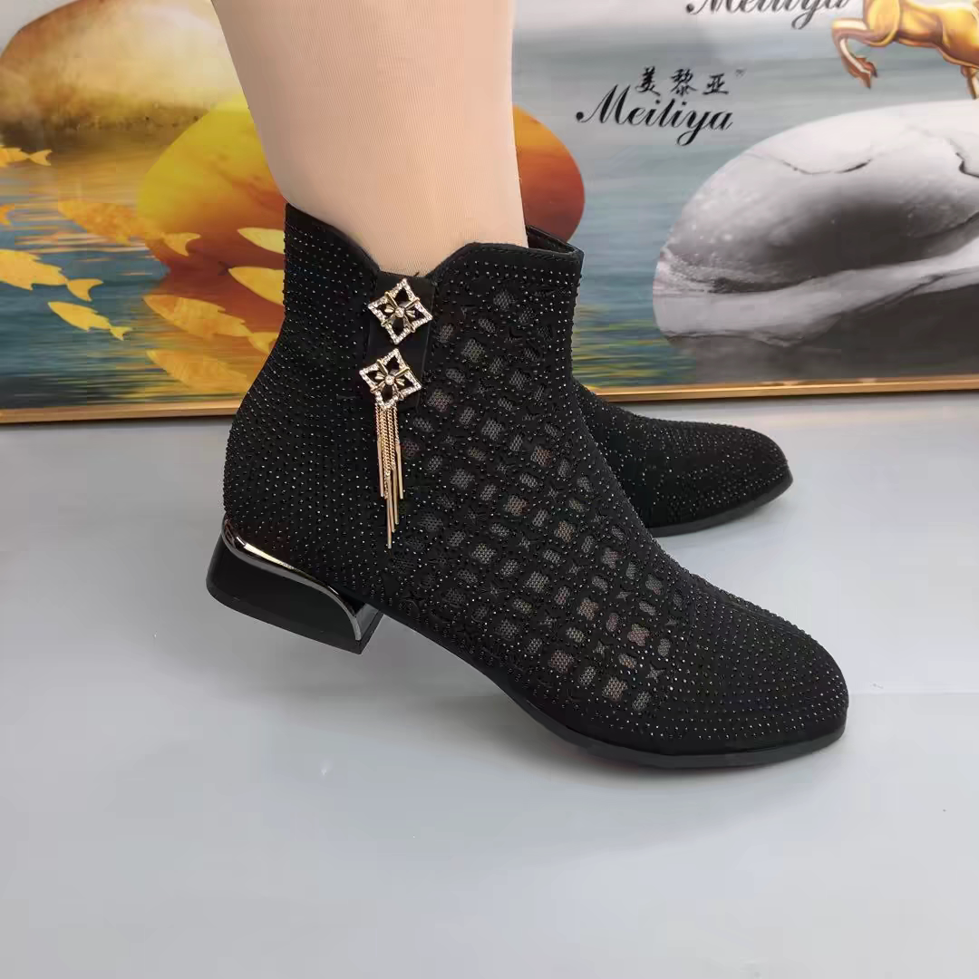 短靴女春夏季镂空网纱高跟尖头网靴2025年新款软皮靴透气搭配裙子