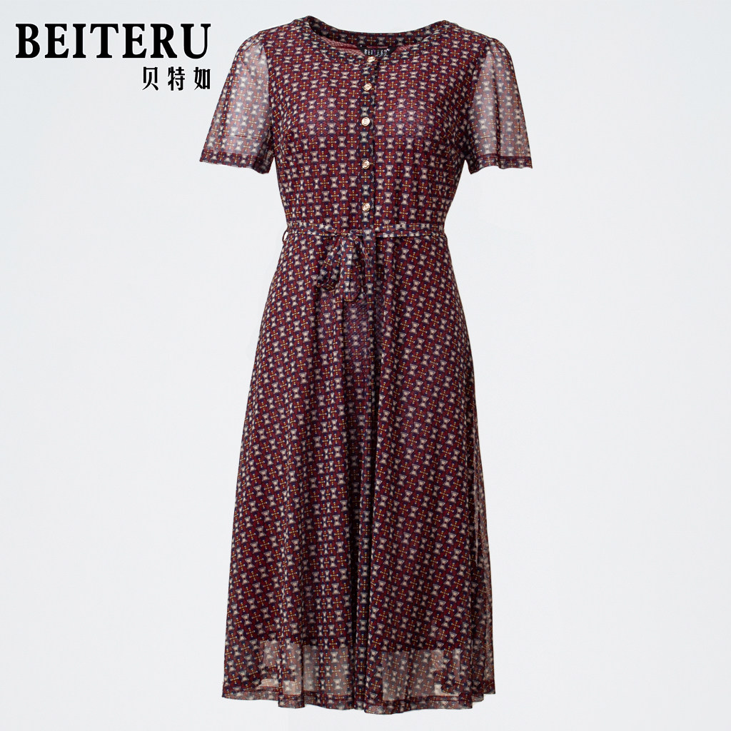 贝特如连衣裙中年女士妈妈装夏季新款印花高级感时尚别致显瘦长裙