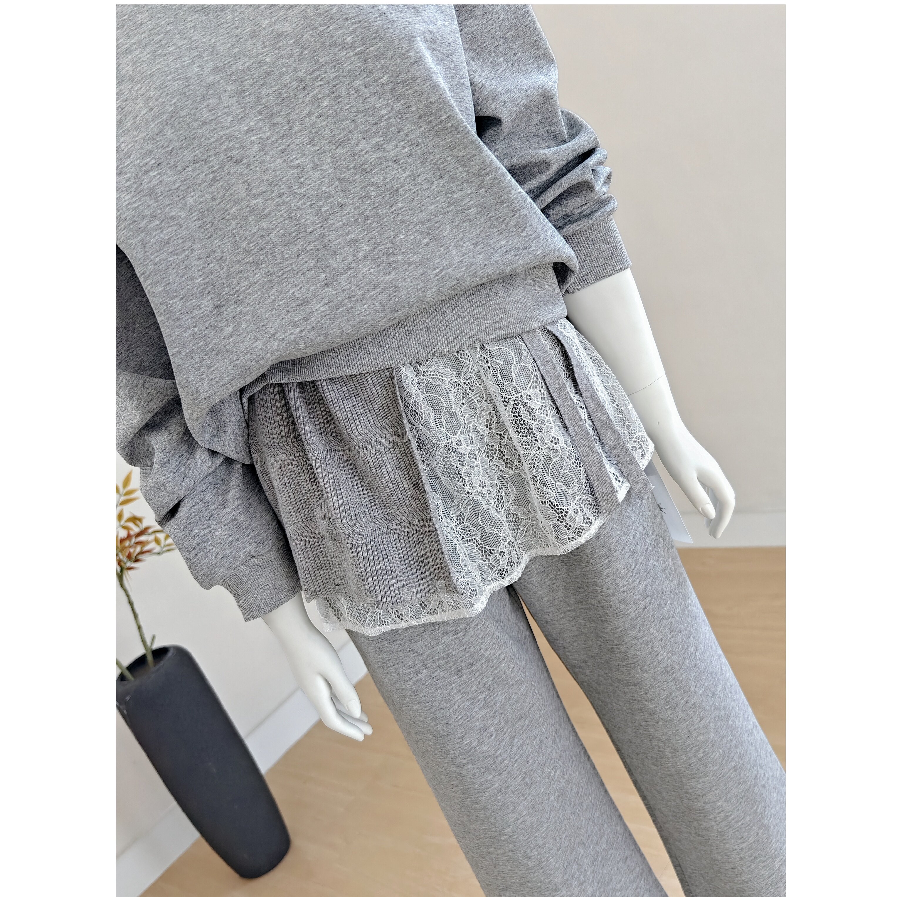 2026春季新款减龄休闲运动风蕾丝屁帘卫衣卫裤三件套装女早春穿搭