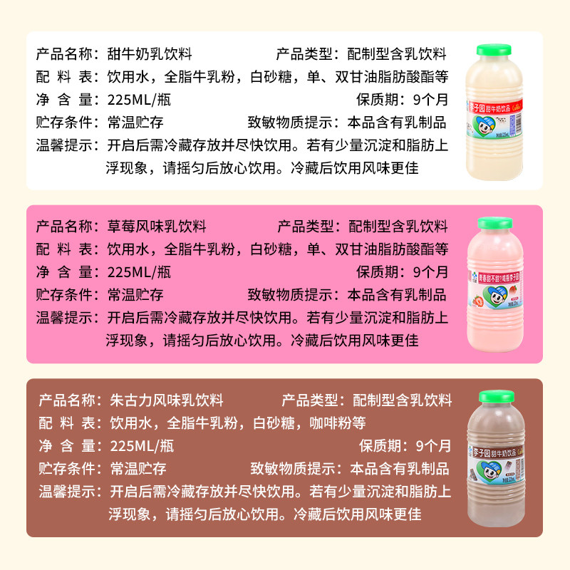 李子园甜牛奶乳饮料草莓朱古力原味饮品童年怀旧儿童早餐奶整箱