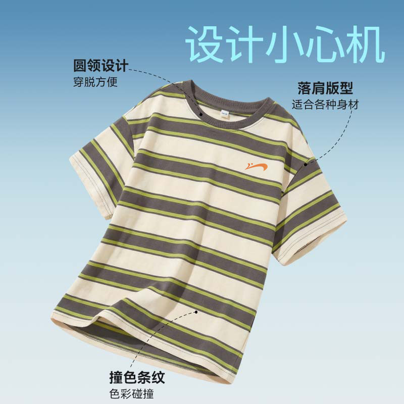 贵人鸟童装男童短袖t恤2026新款儿童夏季条纹半袖上衣青少年体恤
