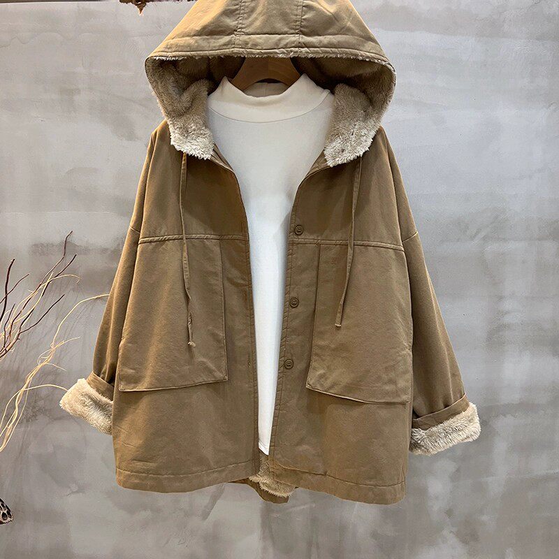 捡漏工装棉服女2025新款羊羔毛冬季加绒大码宽松港风加厚棉衣外套