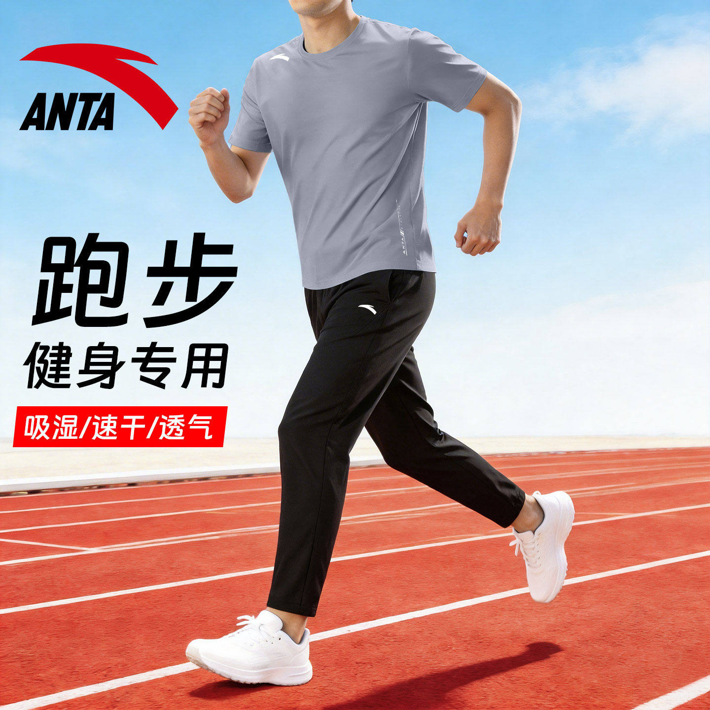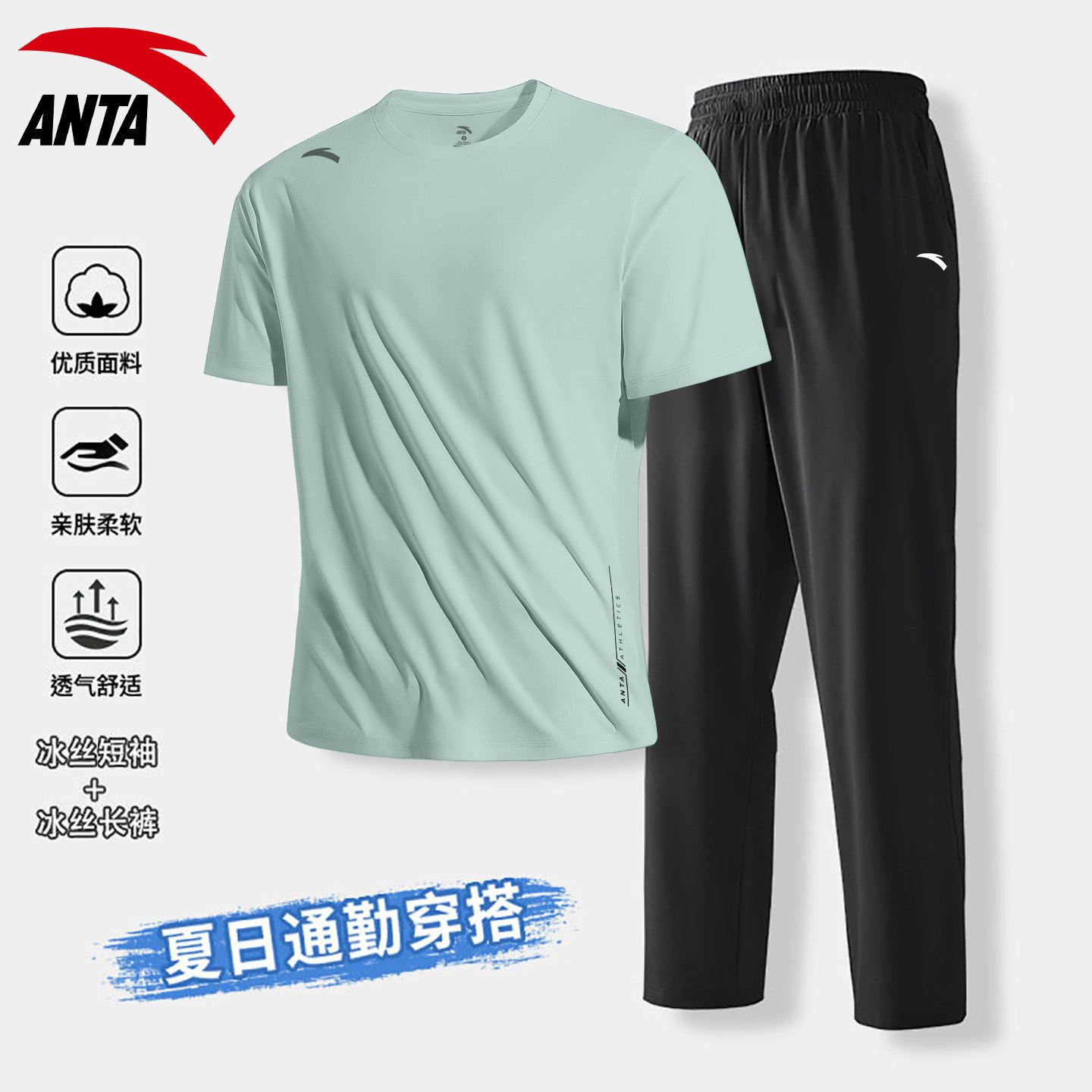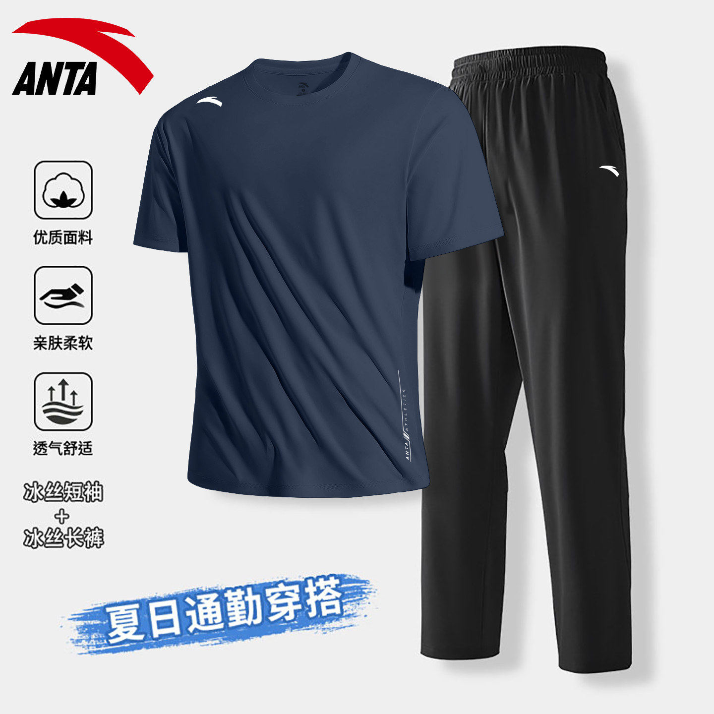 安踏运动套装男夏季速干短袖t恤长裤学生体测跑步中考体育运动服