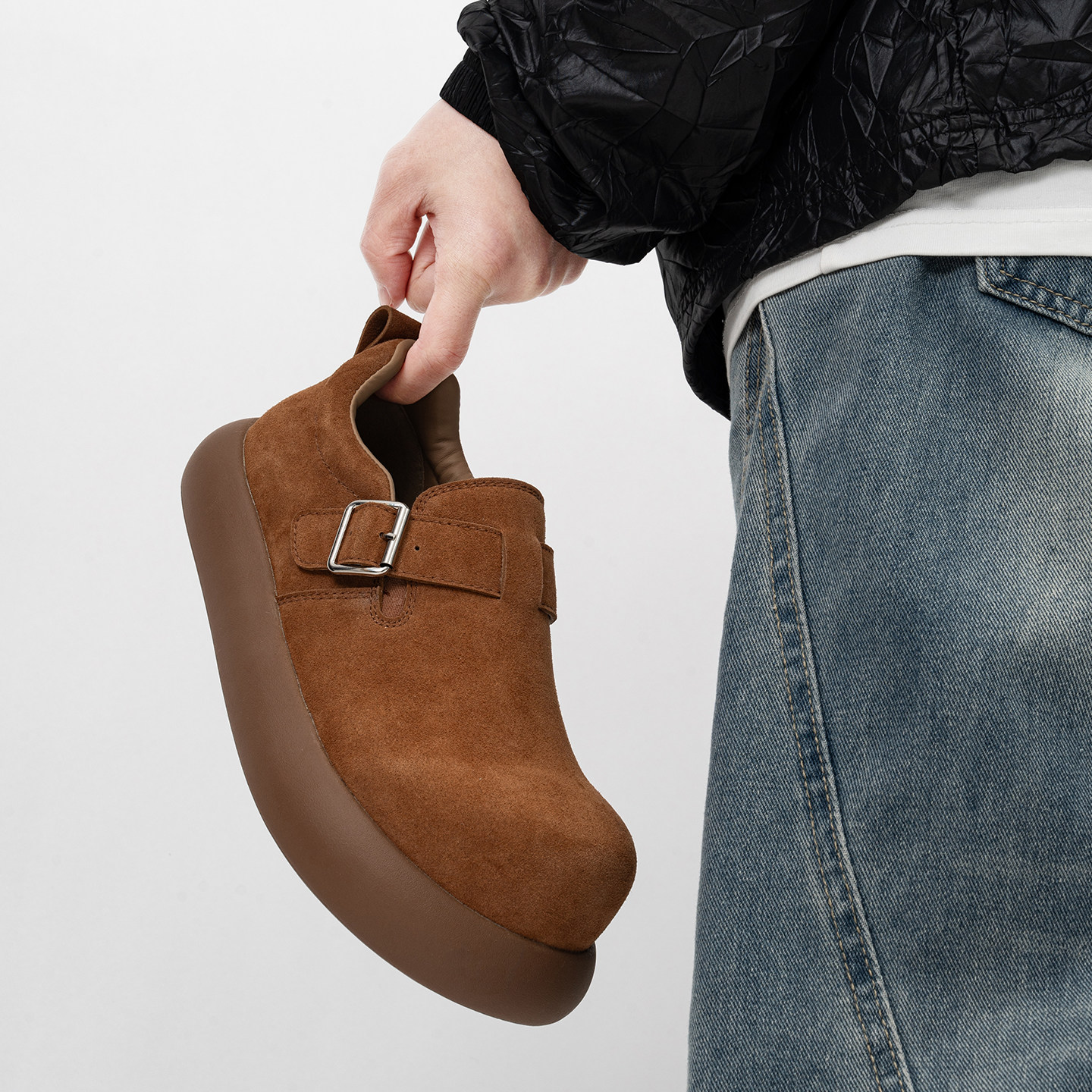 全包搭扣厚底小土豆勃肯鞋男女复古增高乐福鞋情侣通勤休闲大头鞋