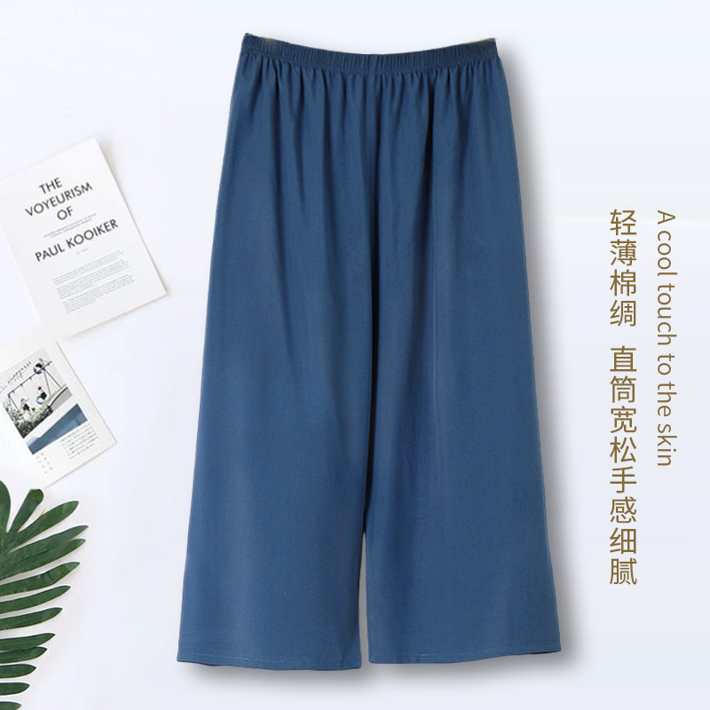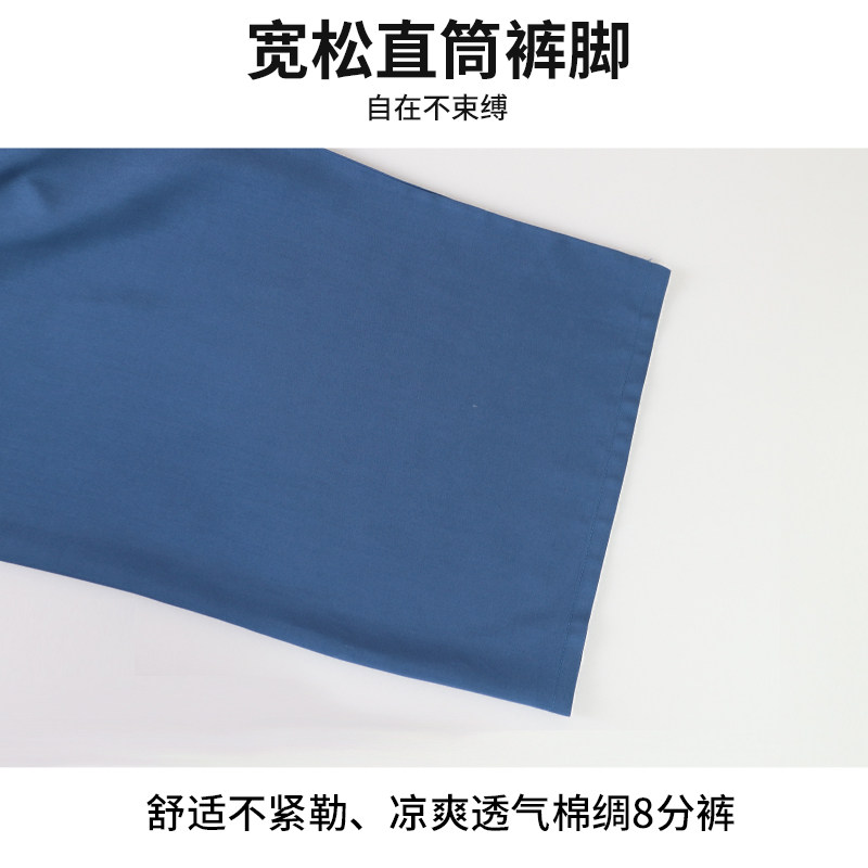 男士夏季人造棉绸家居八分裤宽松薄款透气居家休闲睡裤大码宽松