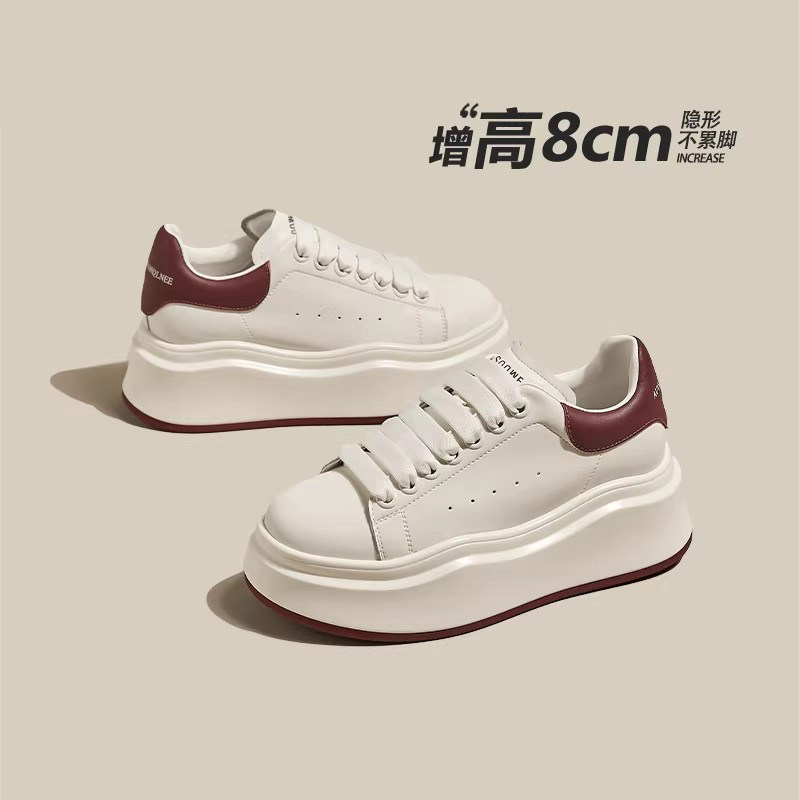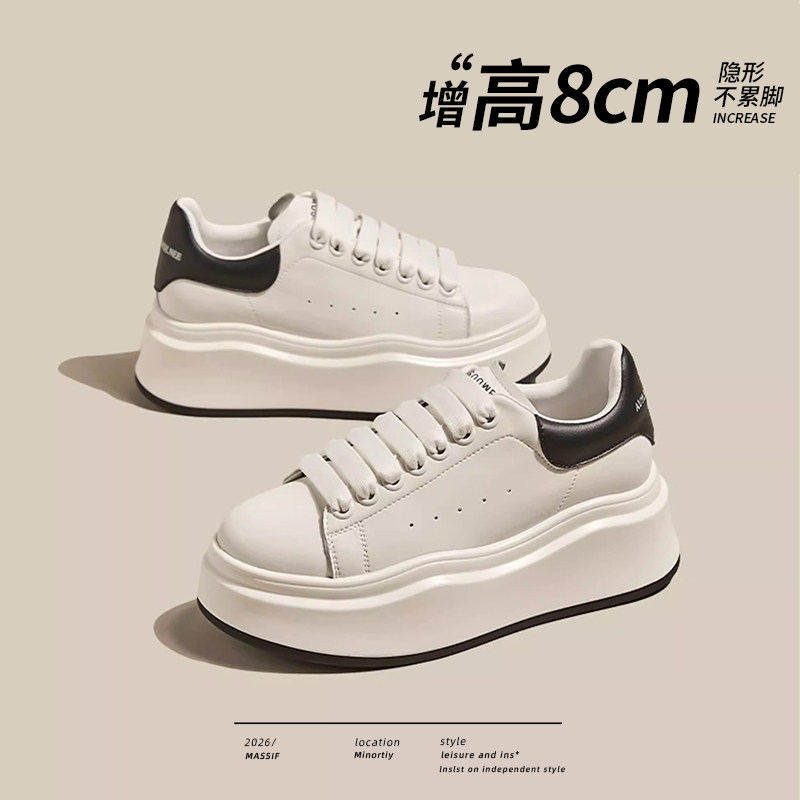 8cm厚底真皮小白鞋女爆款轻便百搭透气小个子内增高休闲运动板鞋