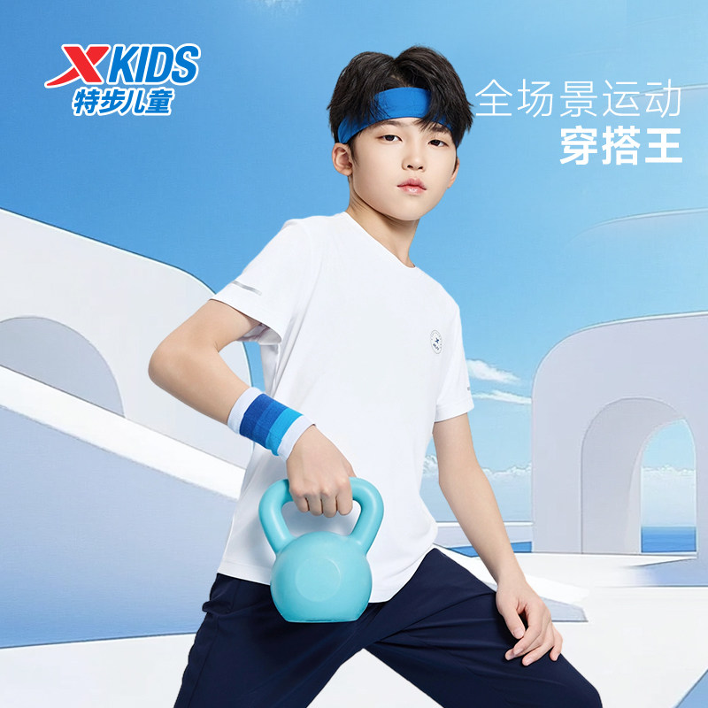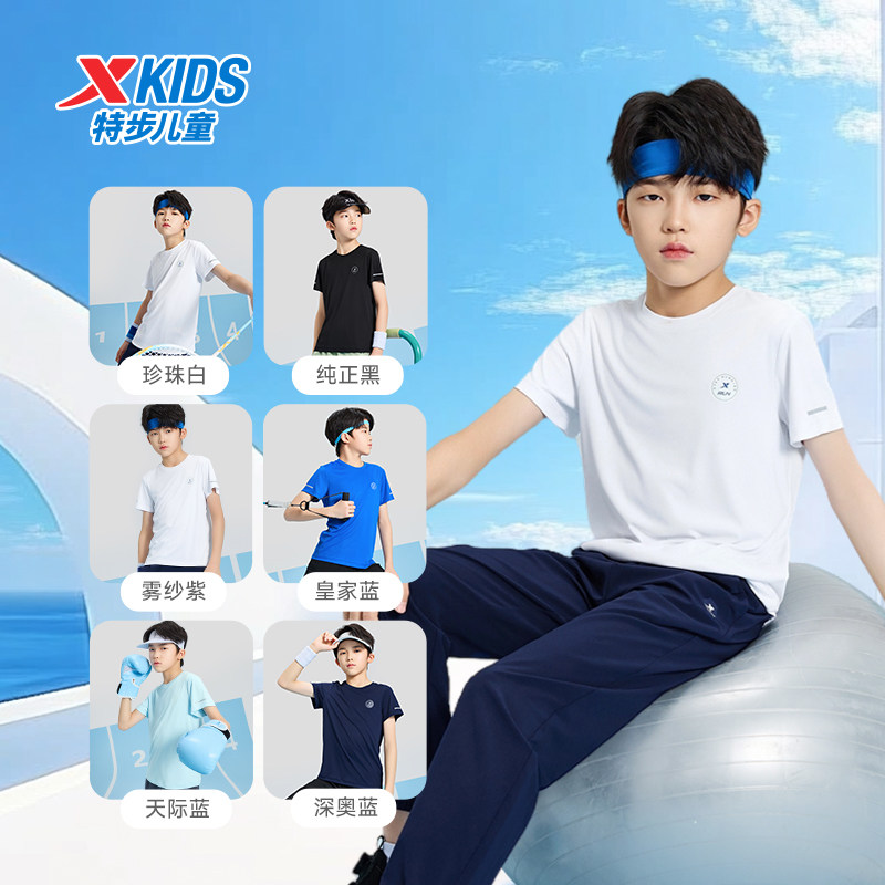 特步童装儿童短袖T恤男童夏季新款中大童透气上衣女童速干运动短t