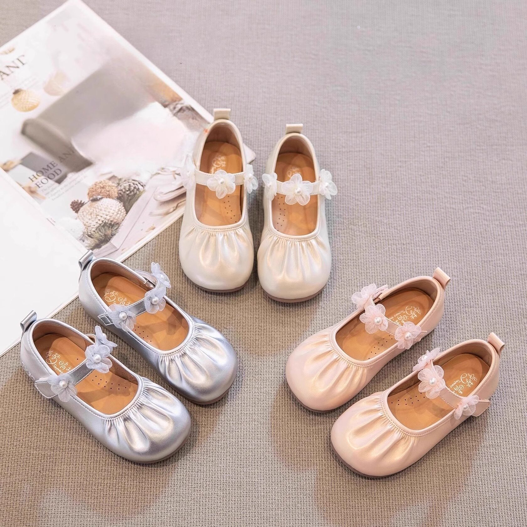 真皮女童皮鞋2026春夏新款儿童公主鞋小女孩银色宝宝浅口单鞋洋气