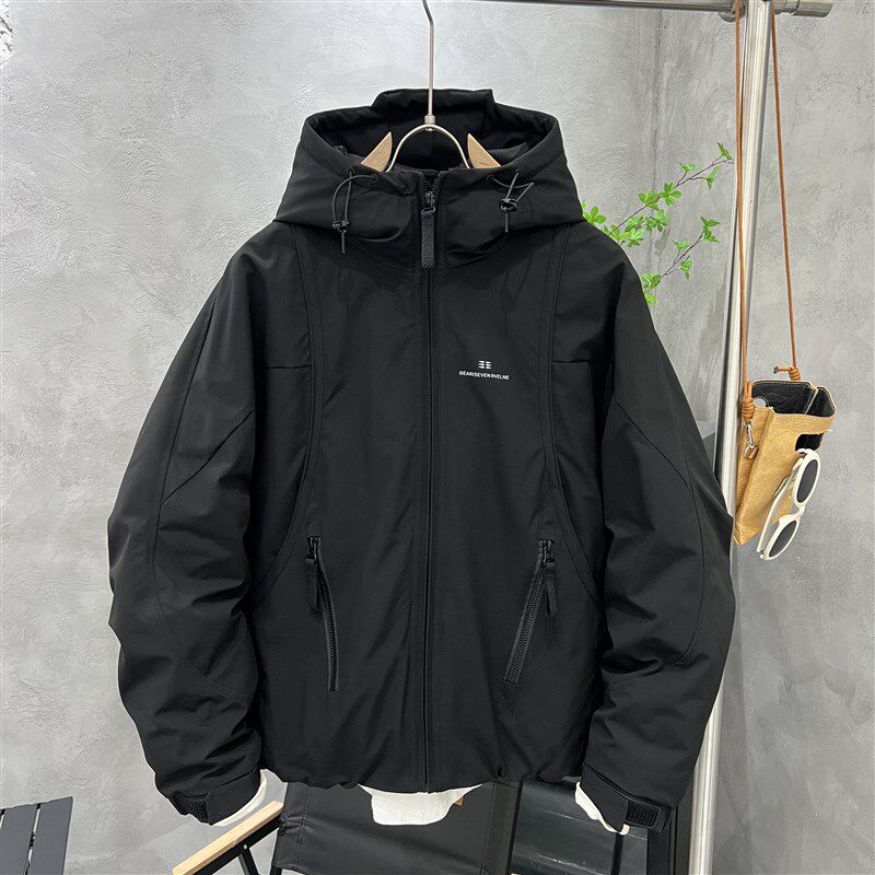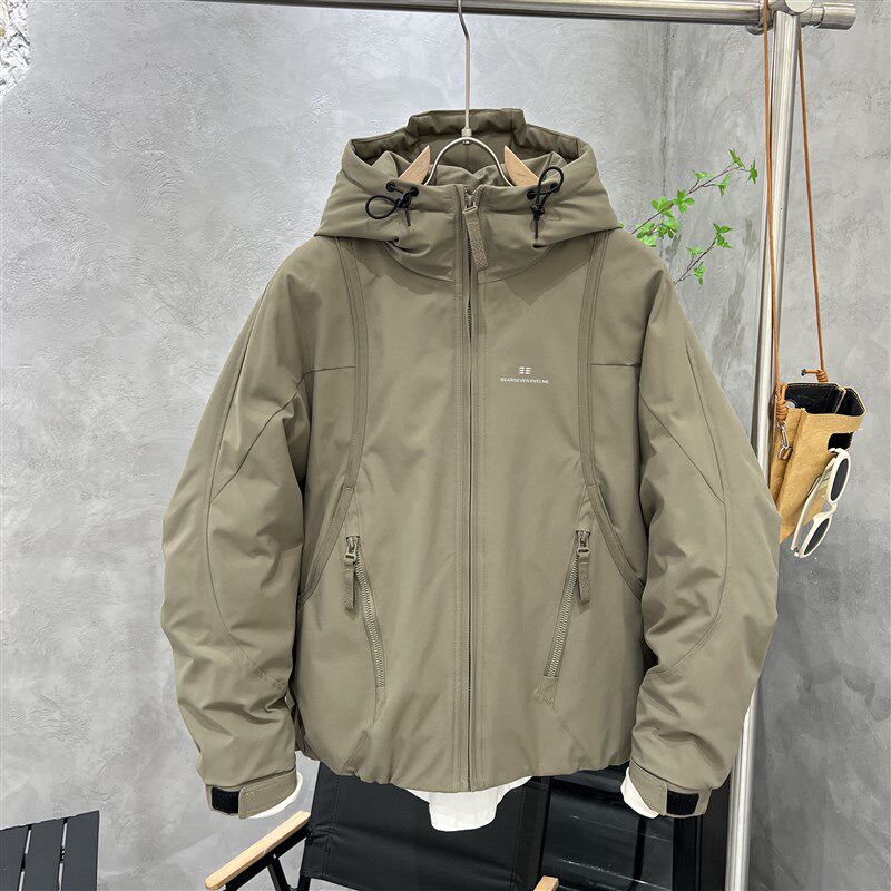 男士连帽羽绒服冬季2024新款轻薄保暖青少年工装冲锋衣短款外套潮