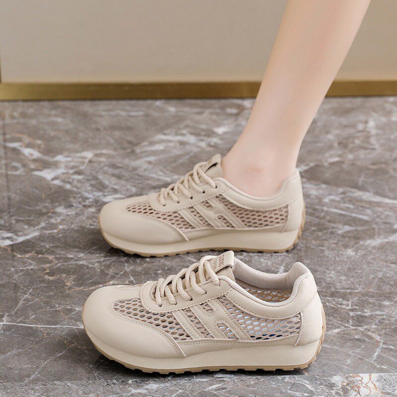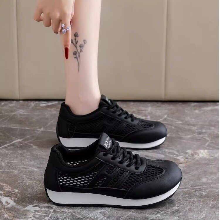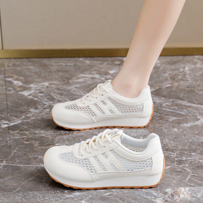 网面德训鞋女2026春夏新款透气轻便厚底休闲学生运动舒适小白鞋女