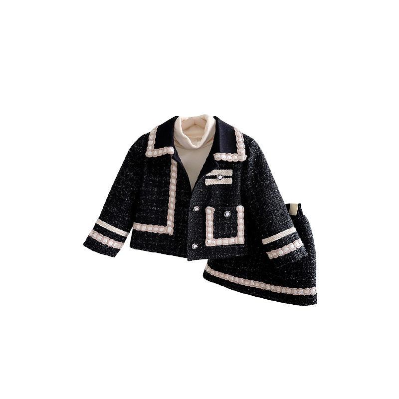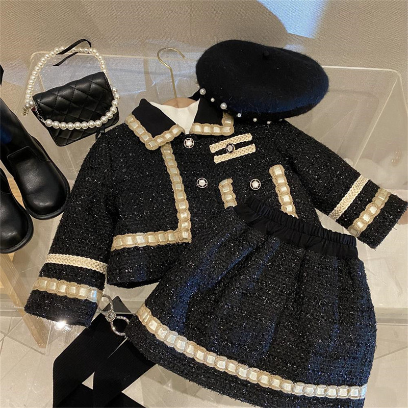 女童小香风外套半身裙套装气质洋气秋冬夹棉女宝宝儿童裙子两件套