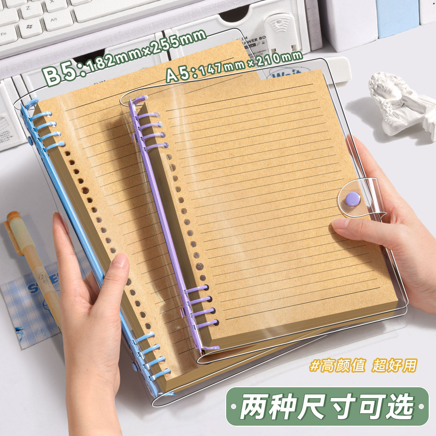 可拆卸透明pvc软壳牛皮纸活页本笔记本本子b5外壳可拆活页扣装订记事本a5初高中生专用高颜值复古日记本考研
