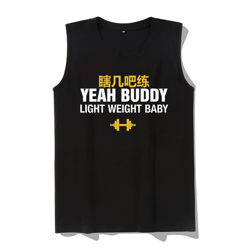 秀洛健身房个性恶搞毫无训练痕迹佛系健身无袖背心男T恤纯棉衣服