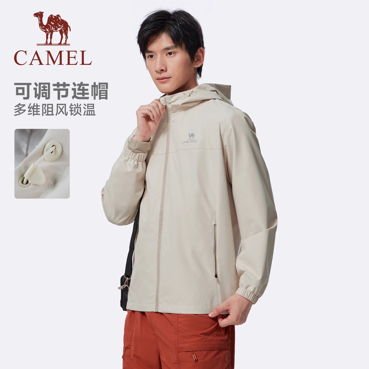 骆驼运动连帽外套男女款春秋冬款梭织防泼水夹克简约时尚百搭风衣