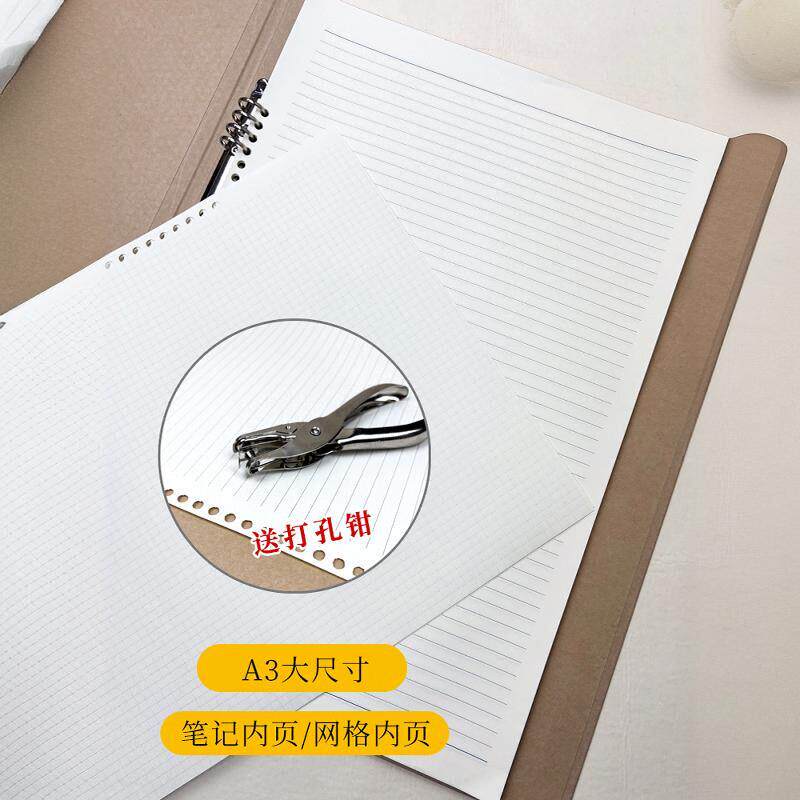 a3牛皮纸硬壳文件铁扣活页夹a4打孔器硬纸板笔记本本子匠心独运