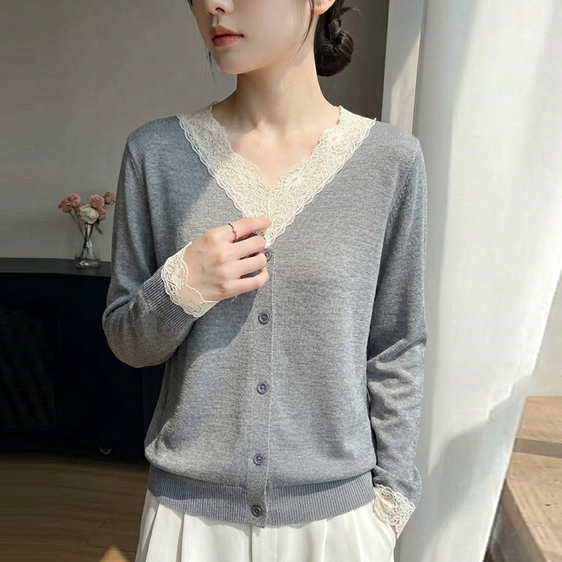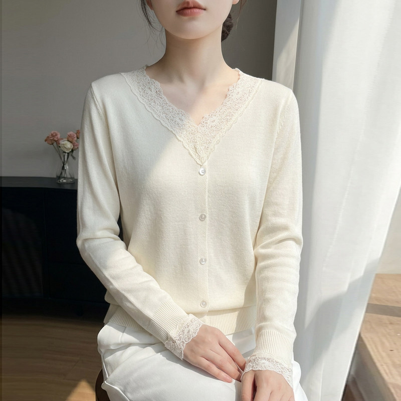 春季女士高级感毛衣女款2026新款爆款蕾丝打底衫女春秋内搭可外穿