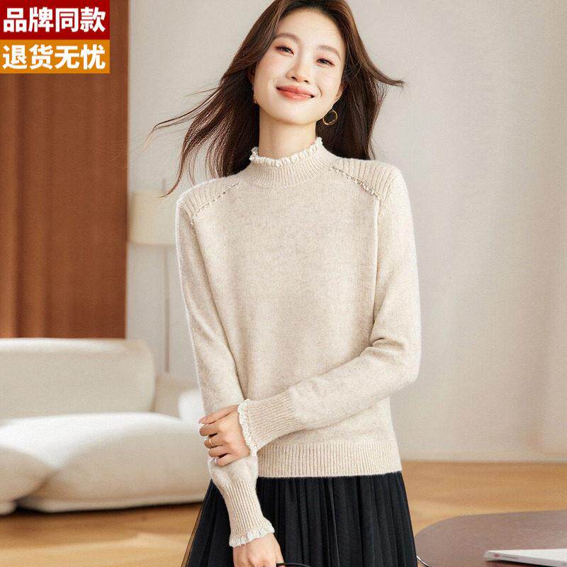 半高领蕾丝边毛衣女款2025秋冬新款可外穿短款内搭羊毛针织打底衫