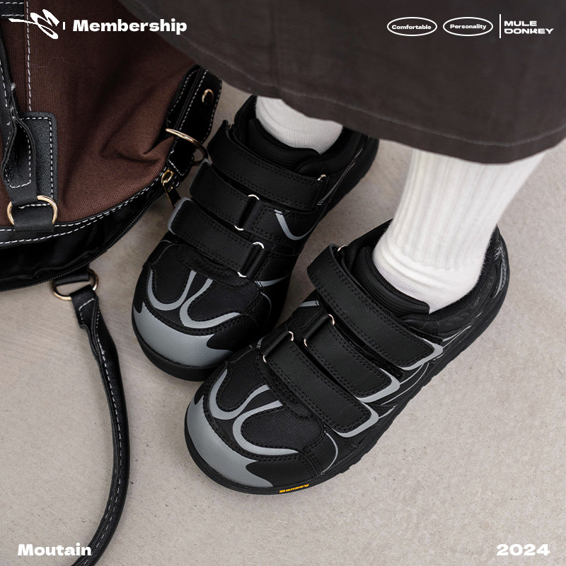 多嘴驴Donkey丑萌魔术贴板鞋女黑色厚底德训鞋春季小众驴蹄大头鞋
